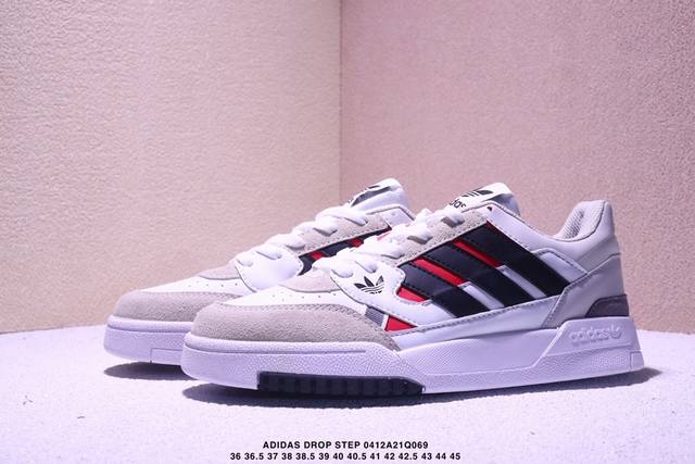 经典板鞋运动鞋 三叶草新款 校园休闲运动板鞋。Adidas Drop Step不断演变,不是只有明星或铁杆球迷才可以穿。采用时尚单色鞋面,搭配复古鞋底。你不必局限于一面。你只要做自己。无论你的风格如何,这款经典鞋力求助你重塑型格。