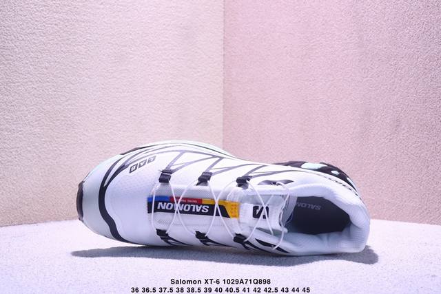 公司级Salomon萨洛蒙 Xt-6 户外越野跑鞋 鞋面采用Sensifit贴合技术 全方位贴合包裹脚型 鞋跟部鞋底牵引设计 提供强大的抓地性能 更适应野外崎岖