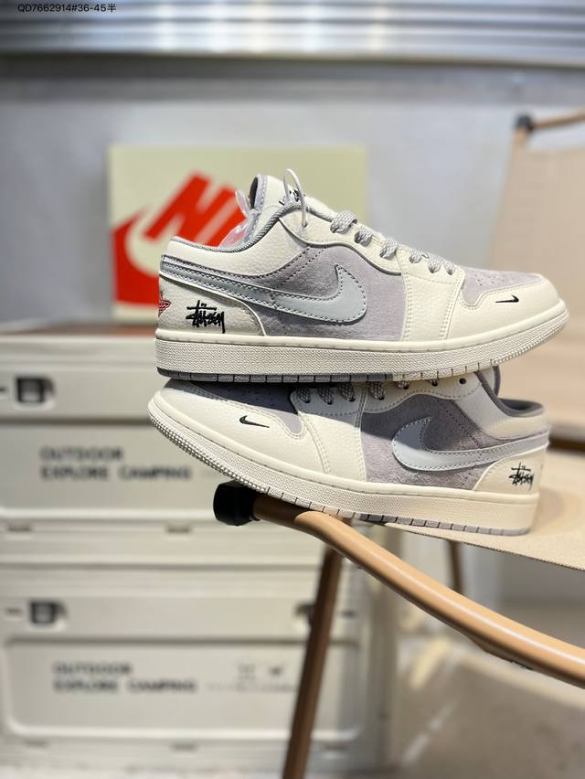 / 公司级头层皮斯图西 X 乔丹Air Jordan 1 Low Aj1低帮系列篮球鞋 官方同步配色 原装级产物 #拒绝公底 立体鞋型 细节完美 高清洁度Sj995