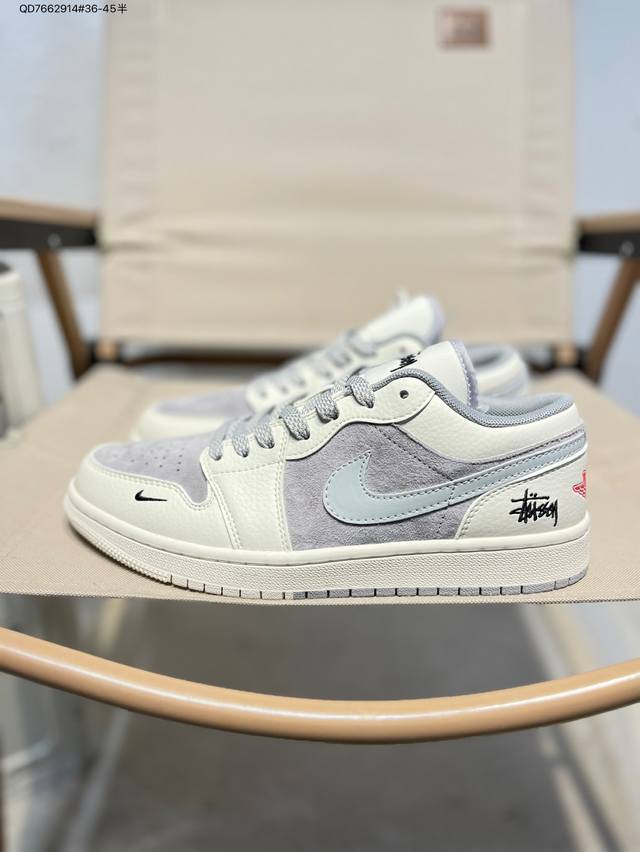 公司级头层皮斯图西 X 乔丹Air Jordan 1 Low Aj1低帮系列篮球鞋 官方同步配色 原装级产物 #拒绝公底 立体鞋型 细节完美 高清洁度Sj995