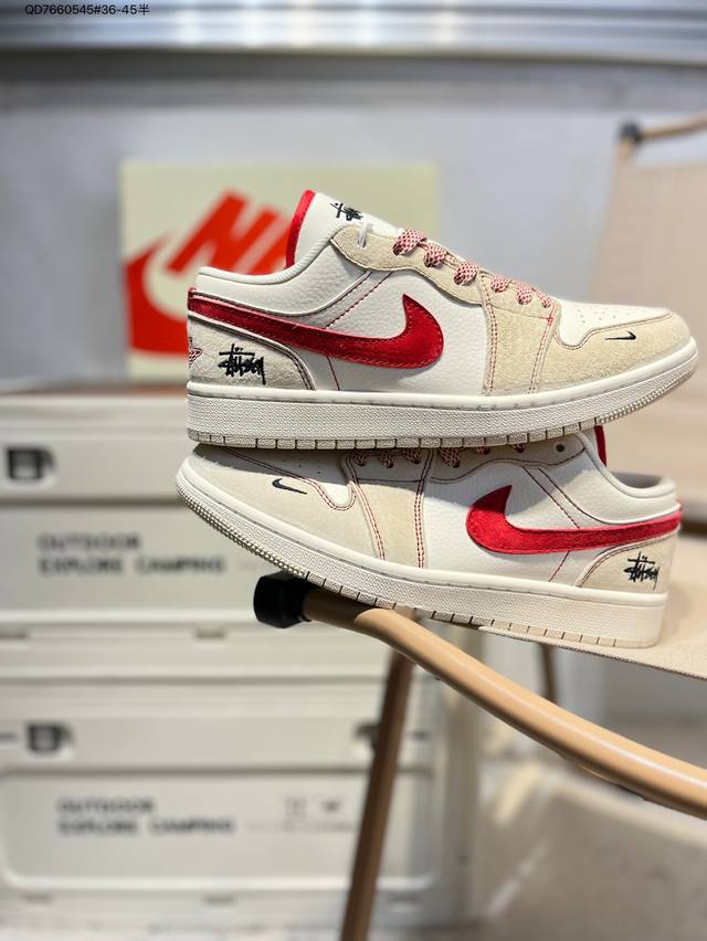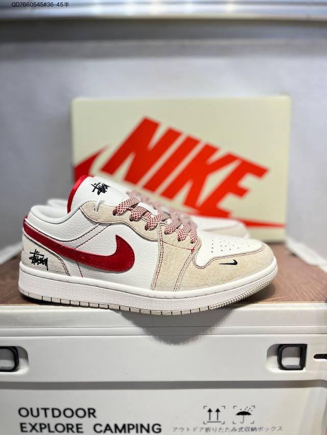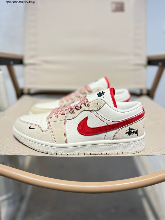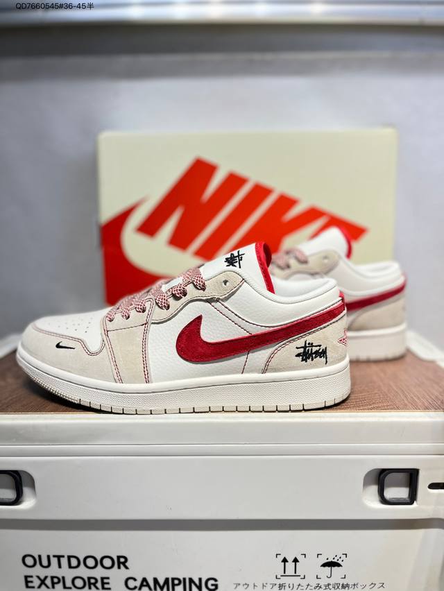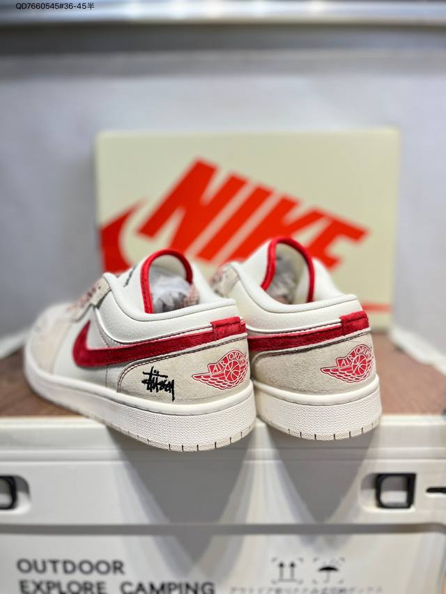 / 公司级头层皮斯图西 X 乔丹Air Jordan 1 Low Aj1低帮系列篮球鞋 官方同步配色 原装级产物 #拒绝公底 立体鞋型 细节完美 高清洁度Sj995