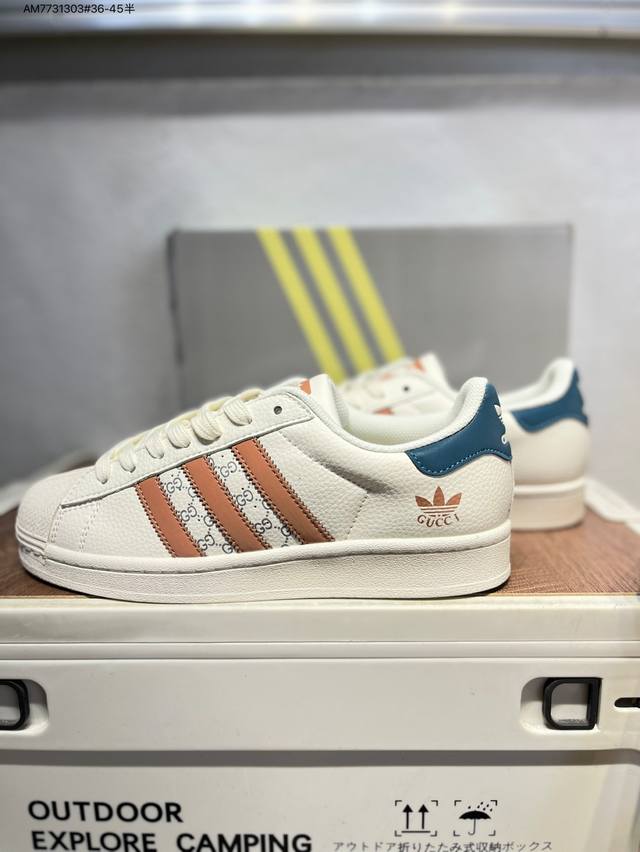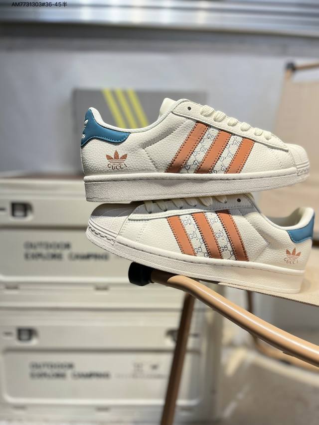 古驰 X Adidas Originals Superstar 经典配色 经典贝壳头官网同步 实拍首发渠道正品订单 诠释市场最高工艺水平区别市面普通真标版本,进出专柜无压力Sd6817 Am7731303#36-45半