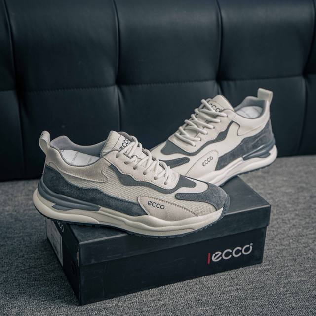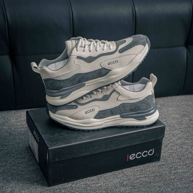Ecco爱步男鞋夏季新款时尚运动鞋 潮流拼接华夫鞋健步鞋 复古跑鞋老爹鞋 品质牛皮与反绒剖面牛皮拼接 透气网布促进鞋内空气流动 质感细腻 舒适透气 鞋面撞色设计,打造现代时尚外观 多种材质拼接 休闲百搭 简约利落Pu+Tpu中底 橡胶大底 抓地力强 轻盈缓震 舒适回弹 具有良好的防滑耐磨性 时尚个性 出街有型