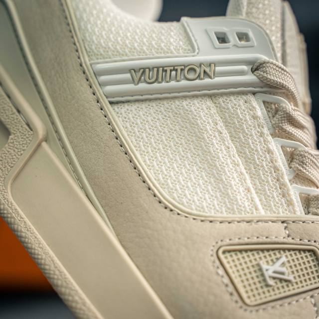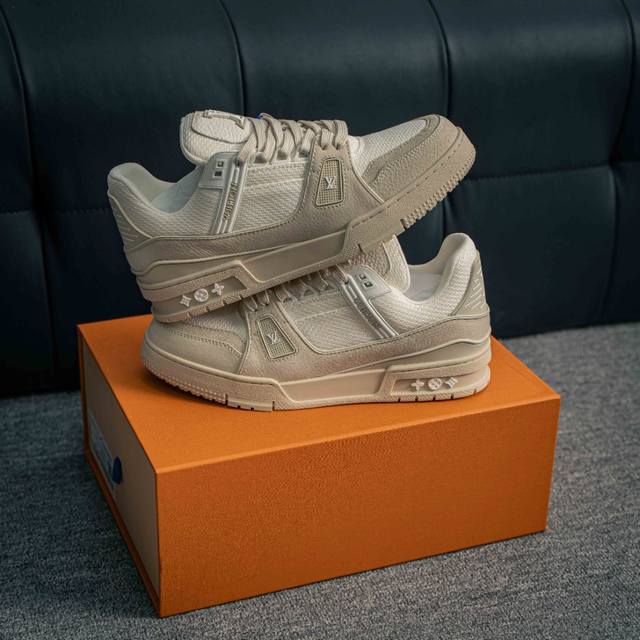 Virgil Abloh 从复古篮球鞋汲取灵感,打造备受青睐的 Lv Trainer 运动鞋。此款鞋履为粒面牛皮革压印标志性 Monogr