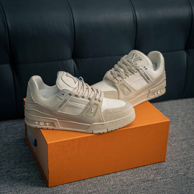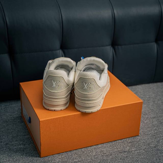 Lv#男女鞋广东原产#升级厚实抽屉礼品鞋盒及包装说明书防尘布袋物件 附送快递加固包装你牛皮纸盒 #采用提花丹宁牛仔布料鞋面材质#嵌入超软脚感Eva物料鞋垫#后跟耐弯折滴塑支撑片#外置Tpr光泽组合隔色鞋底法国巴黎百年奢侈品牌Lv路易威登Louis Vuitton Trainer 2.0 Sneaker Low 运动系列低帮复古百搭休闲运动文化篮球板鞋“
