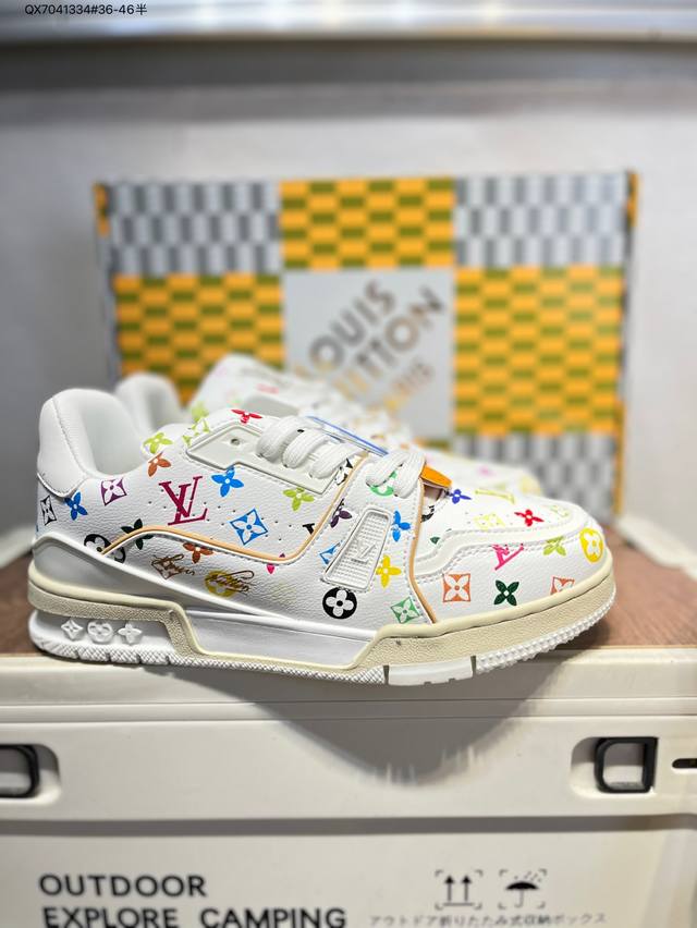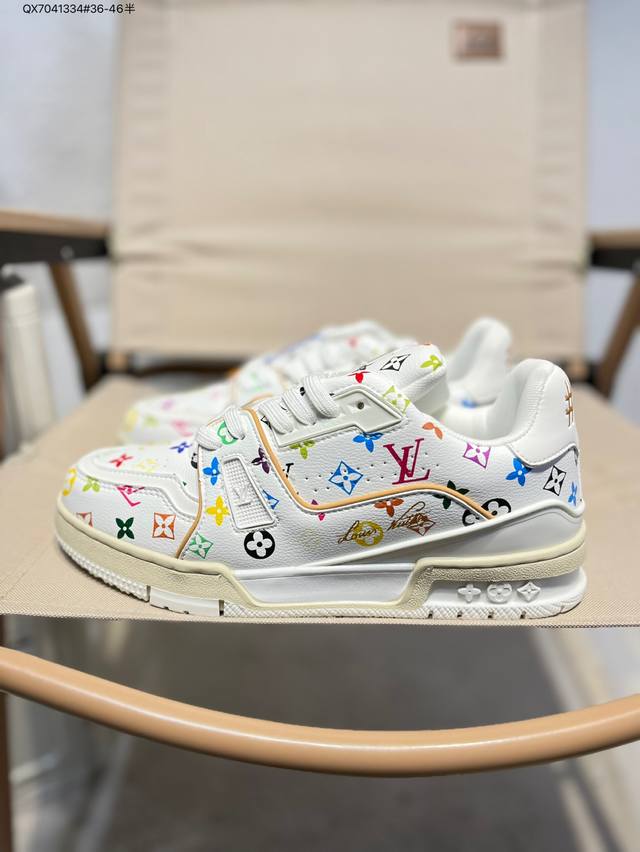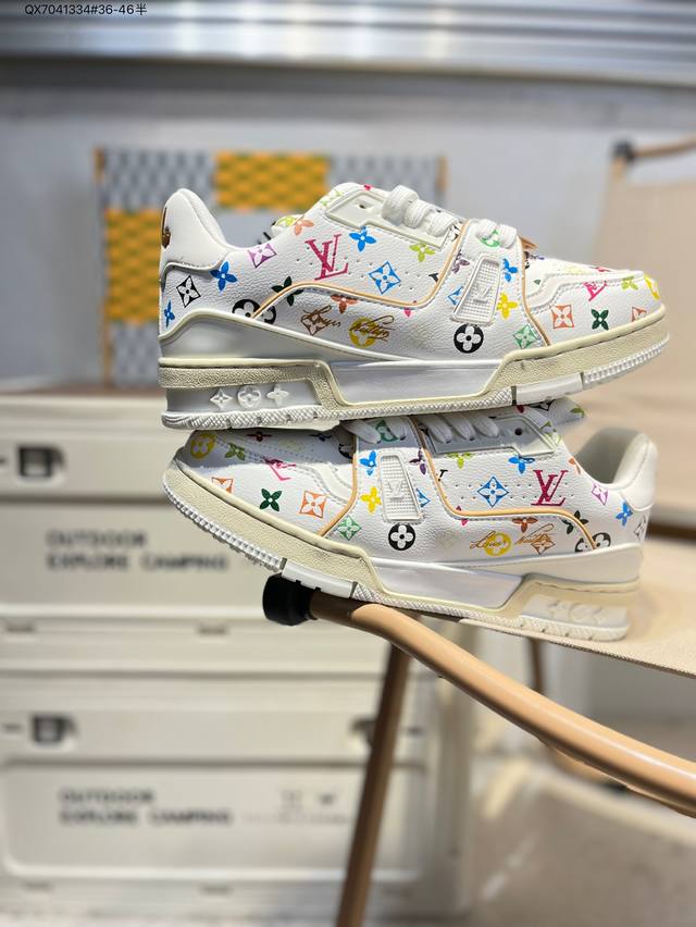 新款 Lv Trainer最新配色运动鞋 L家 篮球鞋风格运动鞋 该鞋由艺术总监 Virgil Abloh设计 垫脚聚米微料加透气英伦网布Qx7041334#36-46半