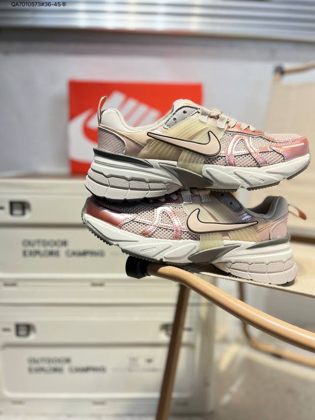 Nk V2K Runtekk 减震防滑低帮 复古老爹鞋跑步鞋 鞋款被命名为 Runtekk 设计上借鉴了 2000 年的跑鞋风格 配色上以金属银为主调 简练又有复古运动气质 材质上使用大面积网眼、皮革、Tpu 组成 支撑和透气性肯定不错 中底处由 Cushlon 泡绵打造 保证在压马路时可以提供优秀脚感 并通过一手做旧氧化效果突出复古感 中底造型很容易让大家联想到巴黎世家3Xl 增高效果同样不能忽视Fd0736 Qa7010573#36-45半