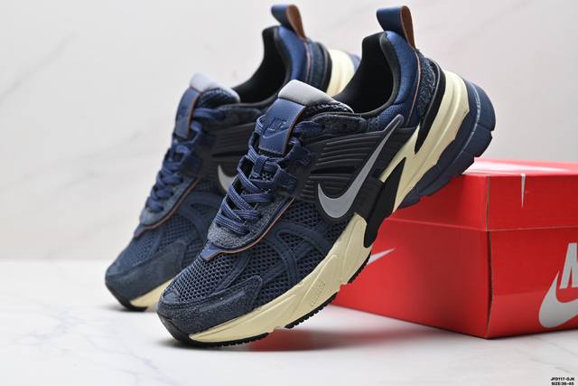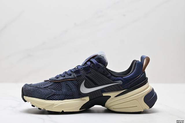 公司级耐克Nike V2K Run跑步鞋复古风潮 网面透气运动鞋 灰银紧致的鞋面材质提供良好的包裹性鞋侧 Swoosh以及鞋头部分搭配增添不少亮点的镀铬细节鞋垫
