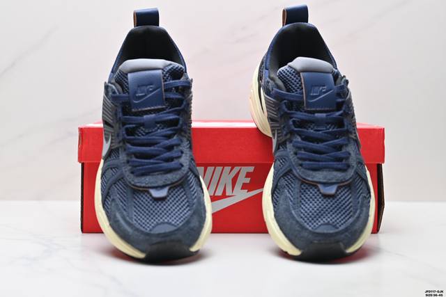 公司级耐克Nike V2K Run跑步鞋复古风潮 网面透气运动鞋 灰银紧致的鞋面材质提供良好的包裹性鞋侧 Swoosh以及鞋头部分搭配增添不少亮点的镀铬细节鞋垫上印有Bill Bowerman头像 将细节拉满中底饰有独特的做旧效果 最后搭载黑色外底凸显整双鞋的复古气质