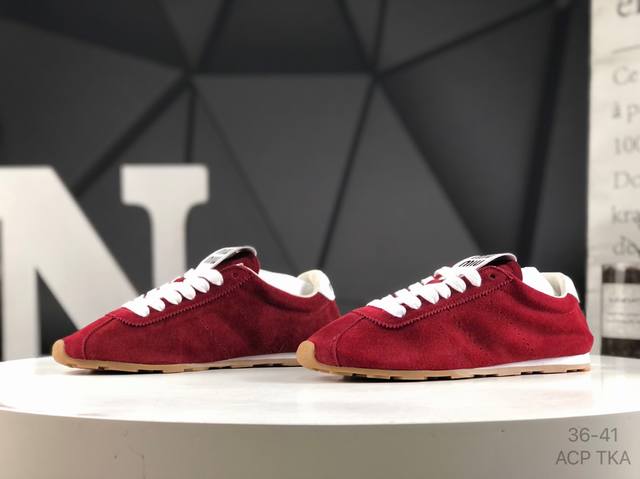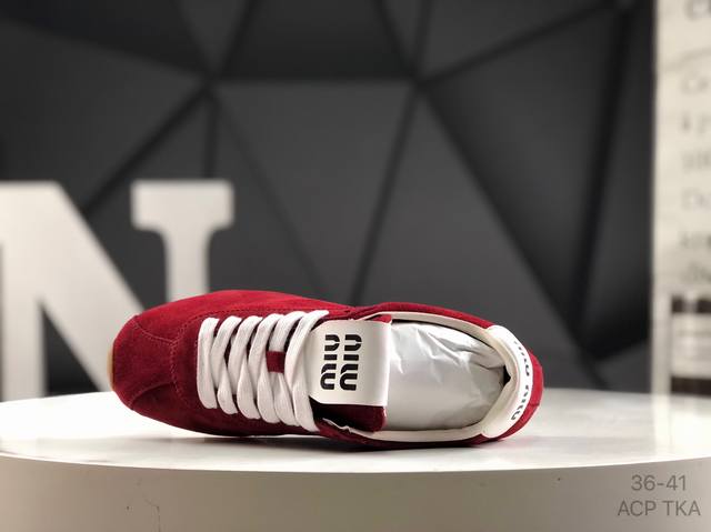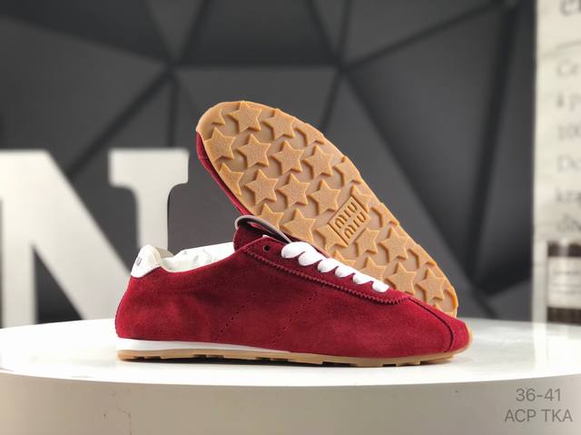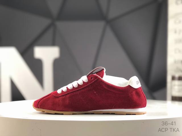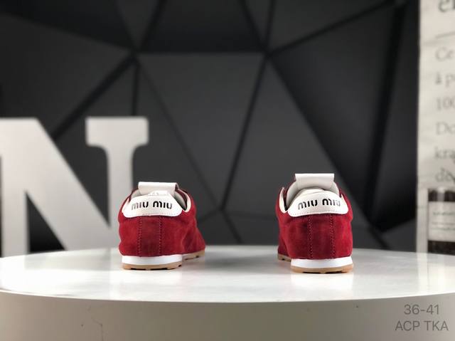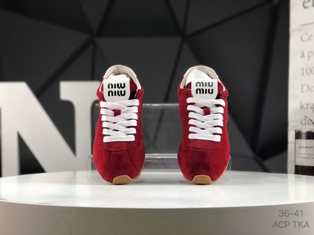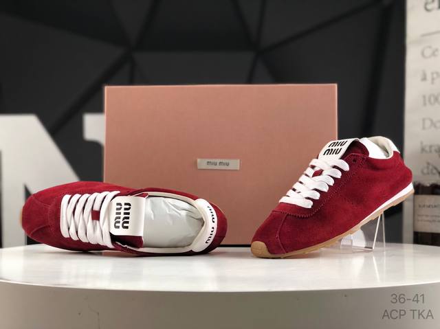 公司级 Miumiu 缪缪 2025早春时尚新品麂皮板鞋 双鞋带搭配 体现了Miu Miu 的大胆特色 尽展女士魅力 简约线条 别致徽标饰于鞋舌点缀 现代风格简