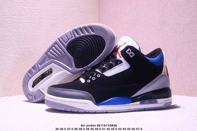 公司级Air Jordan 3 Retro Aj3 乔3 复古休闲运动文化篮球鞋。 首次使用经典传神Jump Man Logo 并创新使用后掌可视气垫。清爽有余