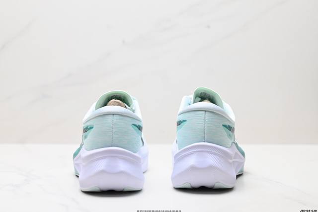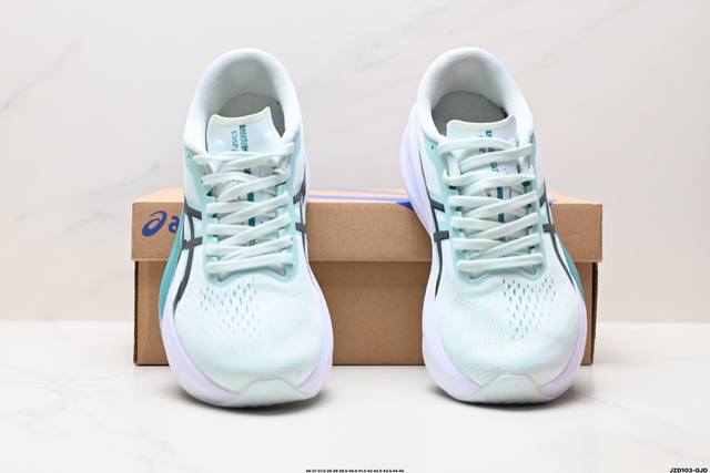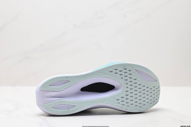 后跟搭载稳定系统科技T-Gel提升整体支撑力和结构感 减少对身体带来的冲击负荷 创新中底至轻回弹