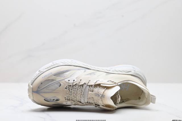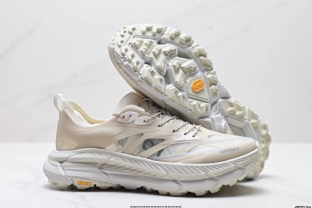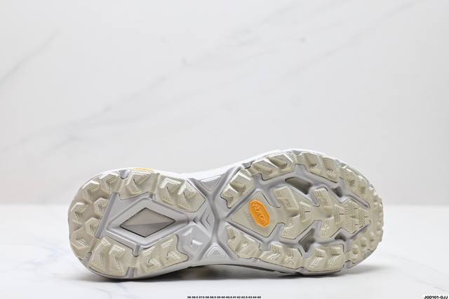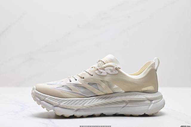 此球鞋继承了Hoka的经典越野鞋型Mafate Speed4的设计 更在此基础上进行了创新和提升 使得它既适合户外越野跑 又充满了时尚潮流的元素