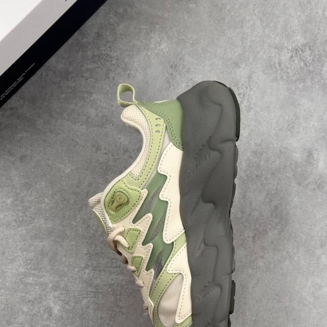 延续蕨草的经典户外风老爹廓形搭配全新自然感鞋面与中底线条设计让每一步都尽显生机