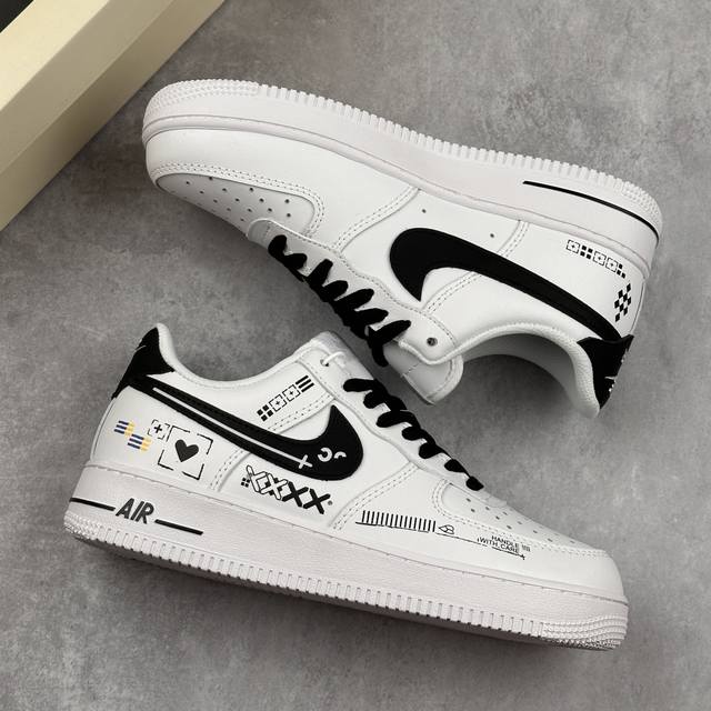 公司级Nike Air Force 1 Low’07 黑白印花集 空军一号低帮休闲板鞋