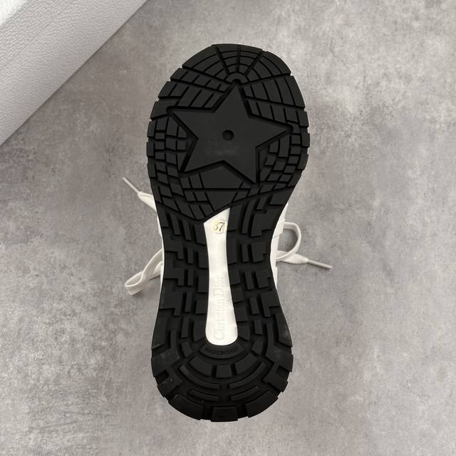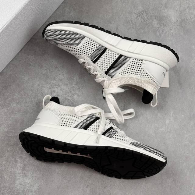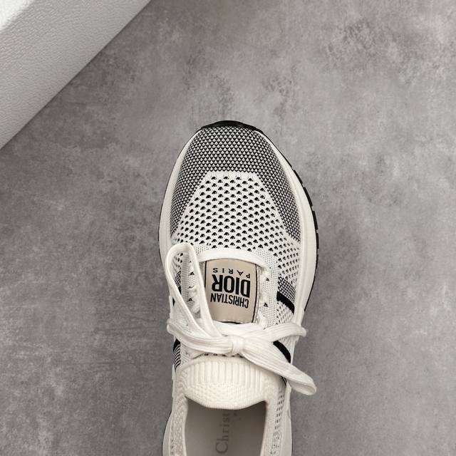 以优雅时尚的造型重新演绎运动风格。鞋面采用纯黑网眼织物精心制作,鞋带和鞋跟饰以Christian Dior Paris标志。精致的双色鞋底轻盈柔软,可为各式休闲造型增添高订气质。