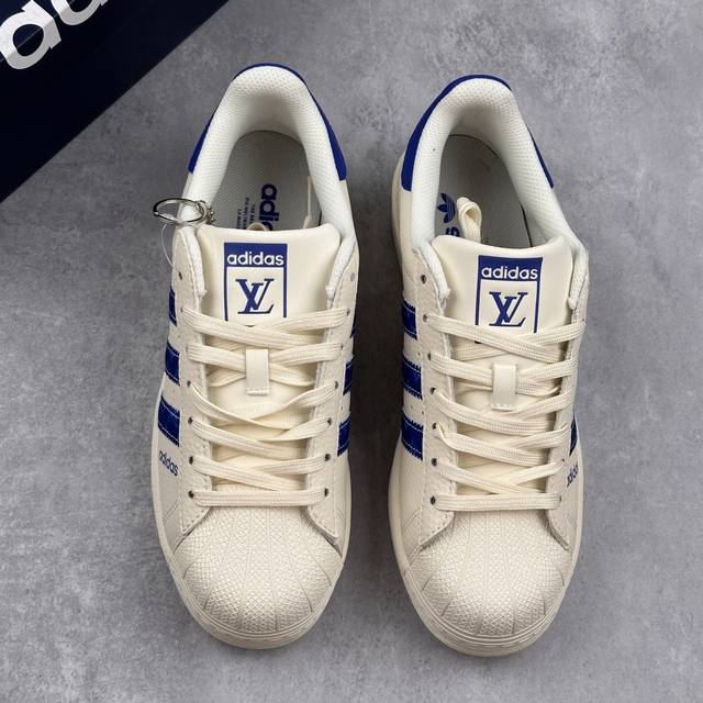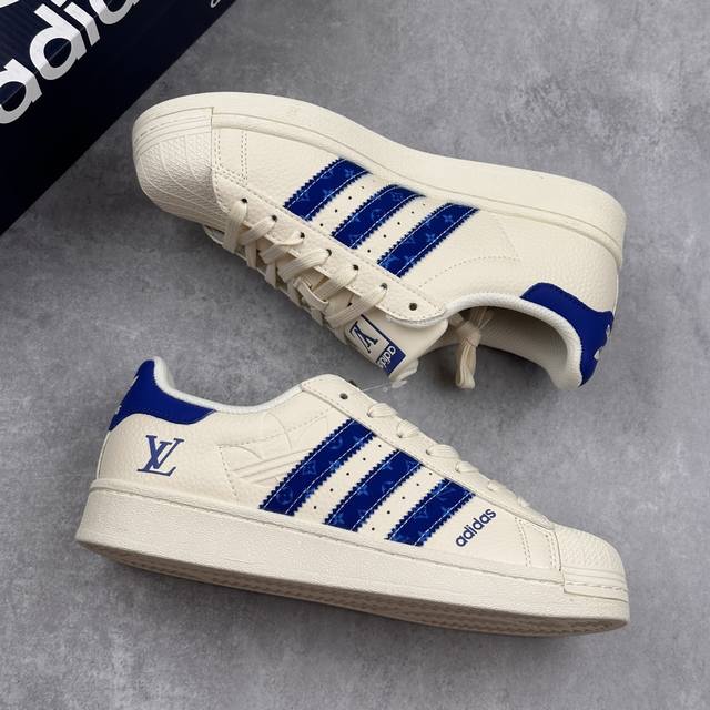 Louis Vuitton X Adidas Original Superstar 路易威登Lv X 阿迪达斯 低帮 联名米白蓝 贝壳头防滑耐磨轻便板鞋