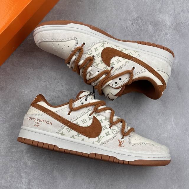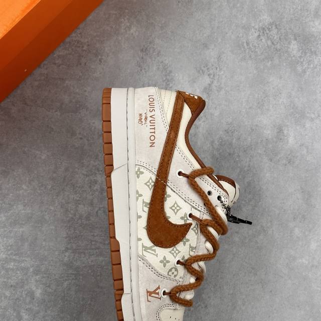 路易威登X Nike Dunk Low Lv联名-灰棕绑带猪八耐克低帮休闲运动板鞋