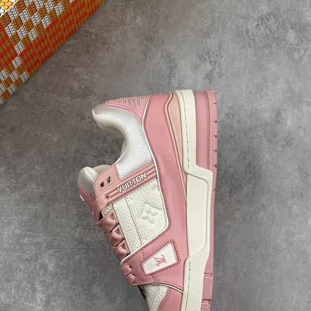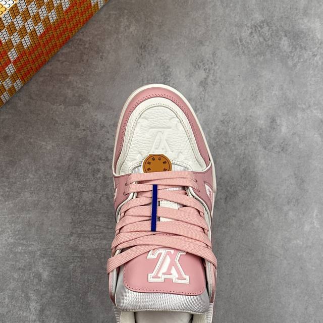Lv#男女鞋广东原产#升级厚实抽屉礼品鞋盒及包装说明书防尘布袋物件 附送快递加固包装你牛皮纸盒 #采用提花丹宁牛仔布料鞋面材质#嵌入超软脚感Eva物料鞋垫#后跟耐弯折滴塑支撑片#外置Tpr光泽组合隔色鞋底法国巴黎百年奢侈品牌Lv路易威登Louis Vuitton Trainer 2.0 Sneaker Low 运动系列低帮复古百搭休闲运动文化篮球板鞋“ Virgil Abloh 从复古篮球鞋汲取灵感,打造备受青睐的 Lv Trainer 运动鞋。此款鞋履为粒面牛皮革压印标志性 Mon