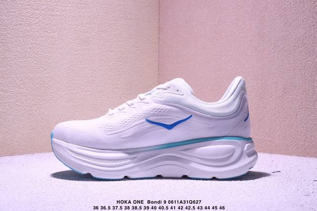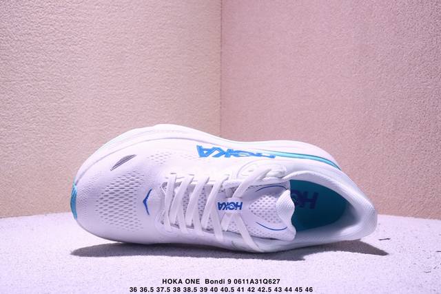 公司级Hoka One One Bondi 9 复古舒适防滑耐磨 低帮 山地户外跑步鞋 货号:1162012 尺码:36 36.5 37.5 38 38.5 3