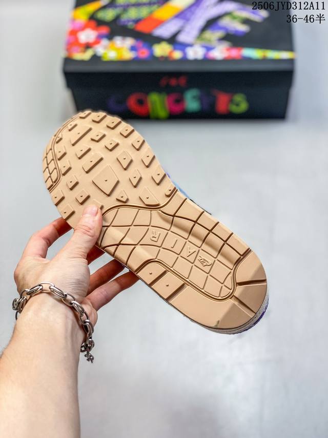 耐克 Nike Air Max 1 初代复古气垫慢跑鞋 由Tinker Hatfeld和Mark Parker在1987年设计 灵感来自于巴黎蓬皮杜中心 Tinker Hatfield在参观了蓬皮 杜中心之后提出了Air Max的标志性开窗可视气垫的理念并将其 实际开发成功 是Nk史上第一双可视气垫跑鞋 凭借着Air Max气垫带来的舒适脚感和鞋面面料上的不断精进才使得Air Max 1在现如今都是复古慢跑鞋的首选 深厚的历史渊源 独特的流线形设计 极为复古的外观使得它深受鞋迷的喜