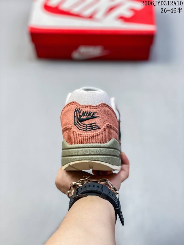 耐克 Nike Air Max 1 初代复古气垫慢跑鞋 由Tinker Hatfeld和Mark Parker在1987年设计 灵感来自于巴黎蓬皮杜中心 Tinker Hatfield在参观了蓬皮 杜中心之后提出了Air Max的标志性开窗可视气垫的理念并将其 实际开发成功 是Nk史上第一双可视气垫跑鞋 凭借着Air Max气垫带来的舒适脚感和鞋面面料上的不断精进才使得Air Max 1在现如今都是复古慢跑鞋的首选 深厚的历史渊源 独特的流线形设计 极为复古的外观使得它深受鞋迷的喜