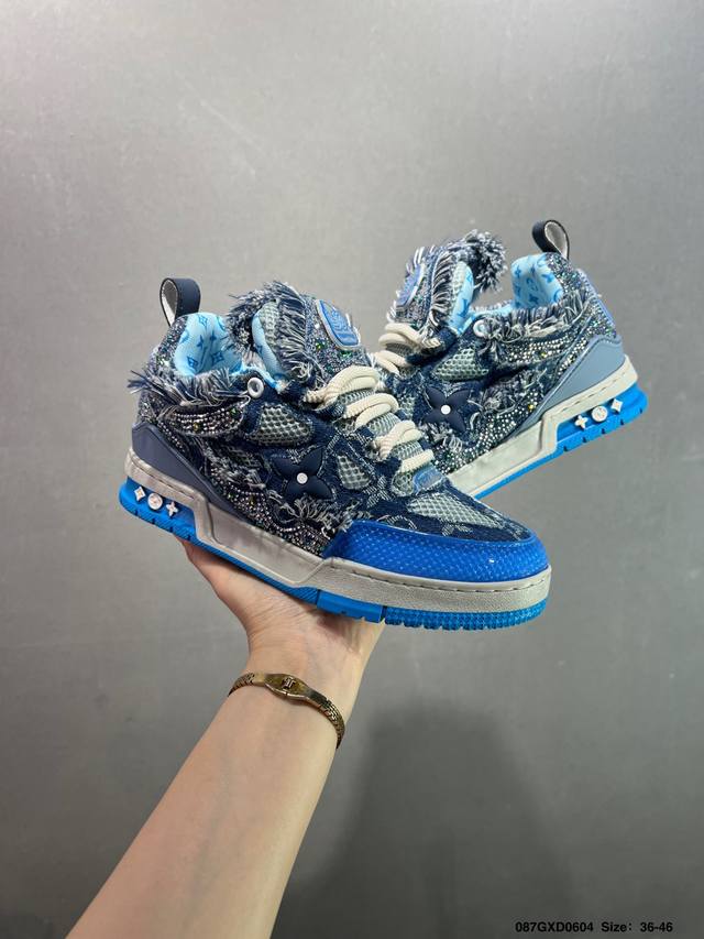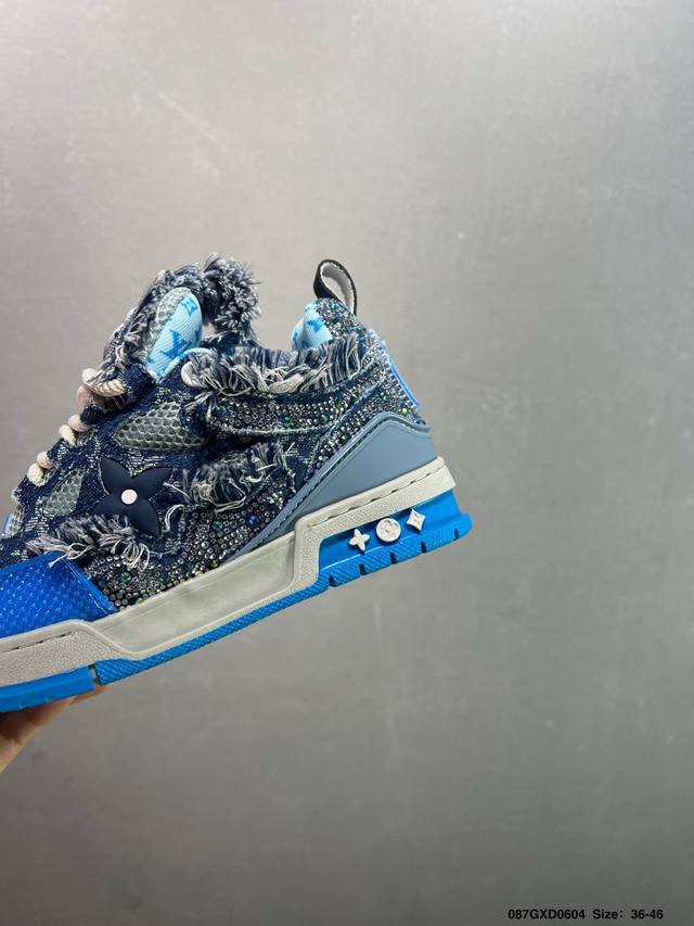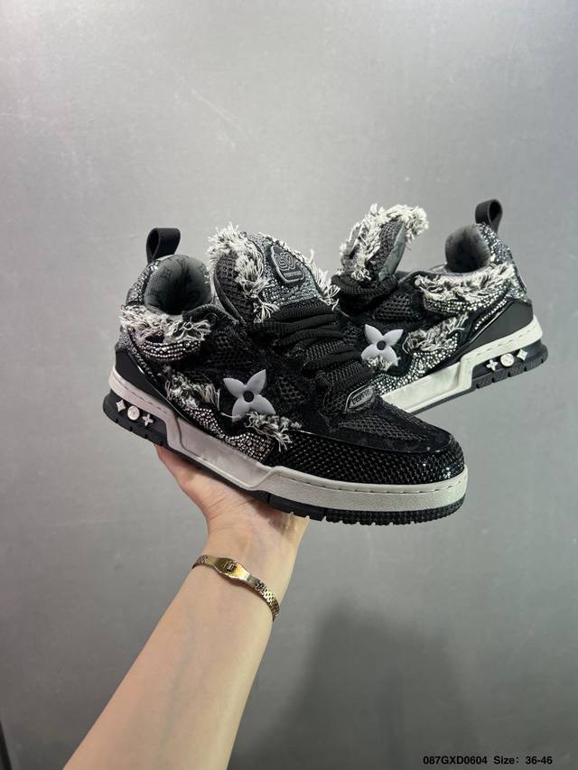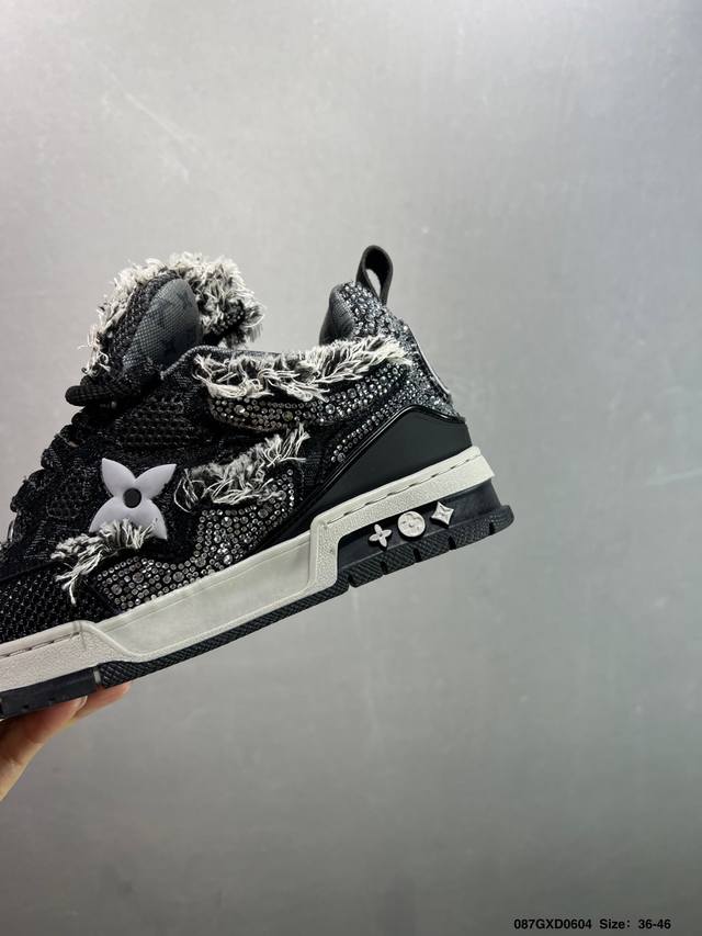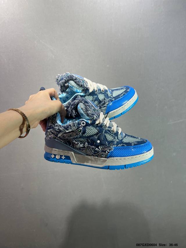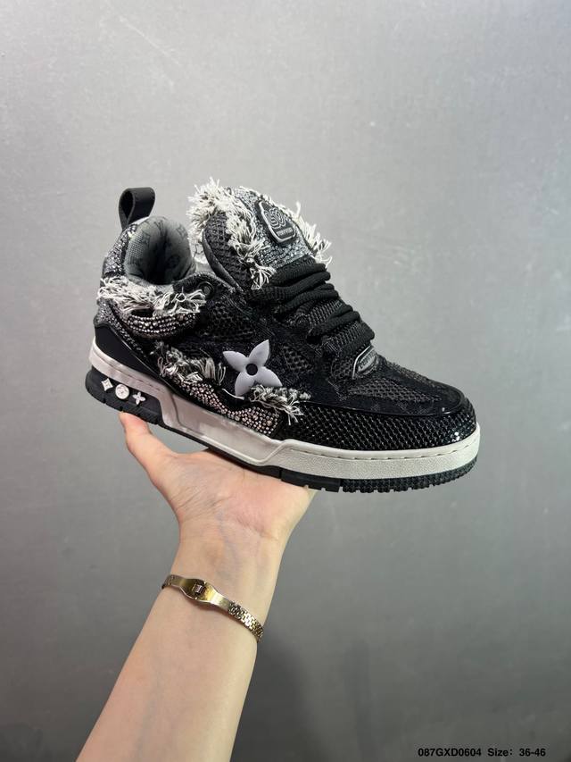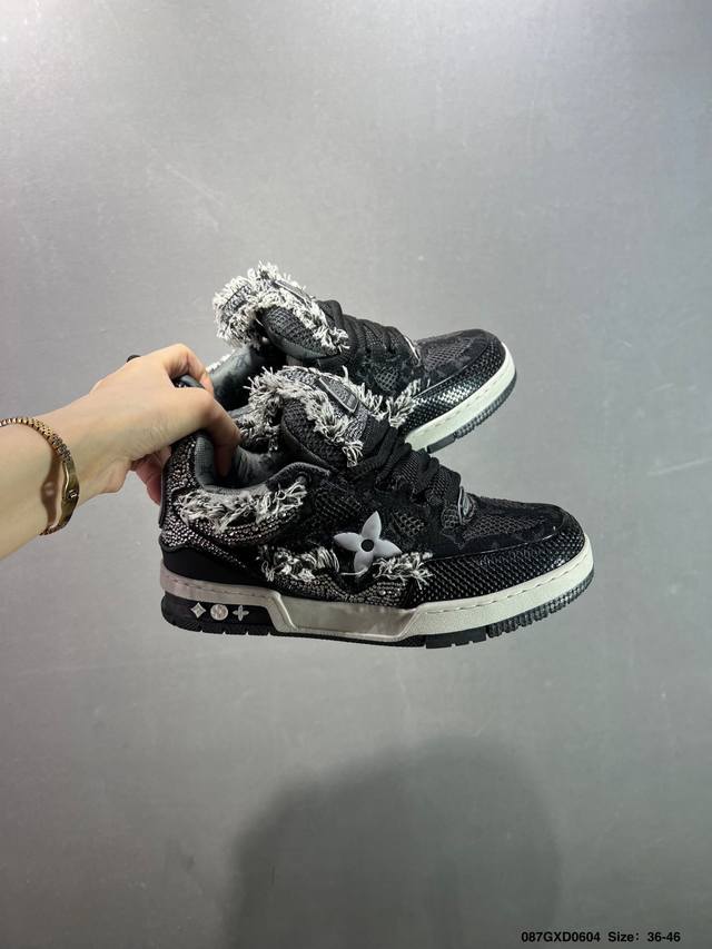 新款 Lv Trainer最新配色运动鞋 L家 篮球鞋风格运动鞋 该鞋由艺术总监 Virgil Abloh设计 垫脚聚米微料加透气英伦网布 细节原版一致 Size:36-45 如图 Id:087Gxd0605