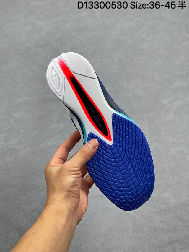 公司级 耐克 Nike Zoomx Vaporfly Next% 4 Proto 是一款限量版的竞速跑鞋,其配色被称为“Proto”,意为“最初、初始”。这款鞋的鞋底碳板采用了8层设计,碳板的刚性为8L 20度,上翘弧度为20度。全掌Zoomx泡棉:这种材料以轻质且能量回馈佳著称,能有效吸收落地时的冲击力并将其转化为回弹能量,为跑者提供源源不断的动力。Flyplate碳板:增强了鞋子的抗扭转性能,使跑者在高速奔跑中脚步更加稳定,不易发生扭伤等情况。透气网布鞋面:轻盈透气,能让跑者的双脚在长时间跑步过程中保