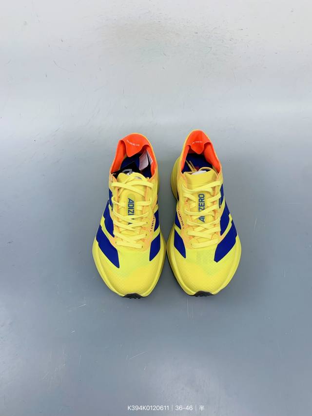 / 公司级Adidas Adizero Adios Pro 4M 马拉松飞线贾卡轻质透气休闲运动跑步鞋 采用双层透气网纱 Flywire动态飞线绑缚鞋面材质 内置Z