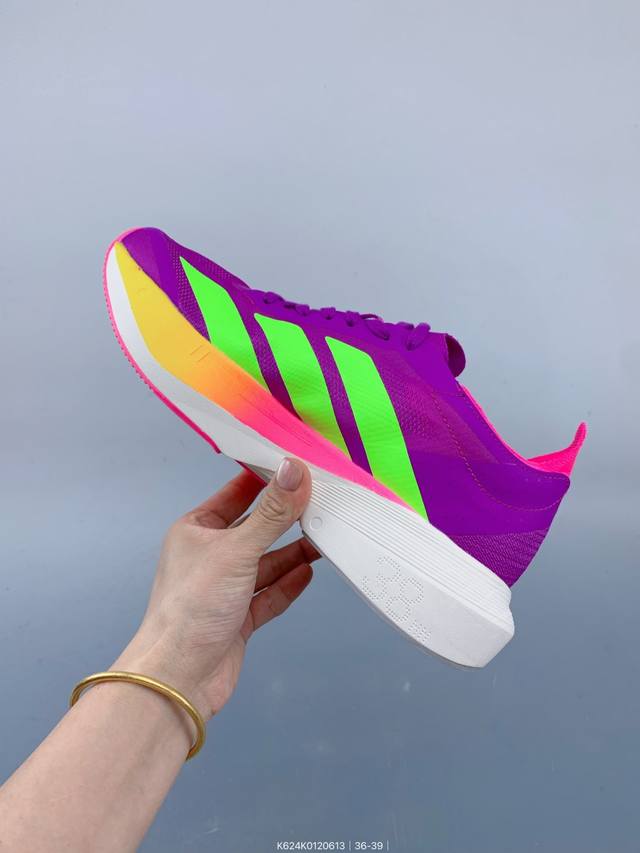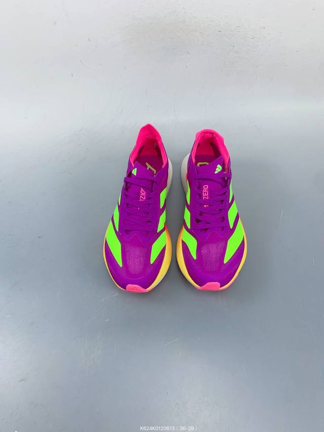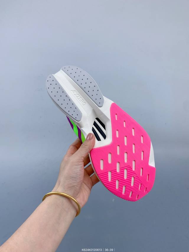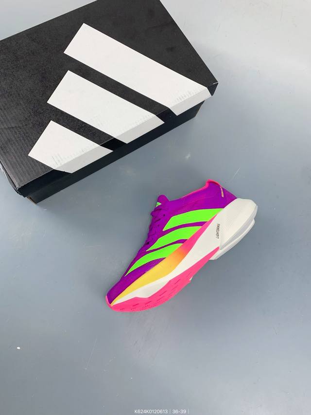 / 公司级Adidas Adizero Adios Pro 4M 马拉松飞线贾卡轻质透气休闲运动跑步鞋 采用双层透气网纱 Flywire动态飞线绑缚鞋面材质 内置Z