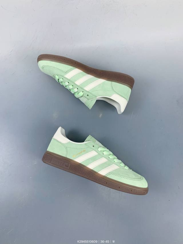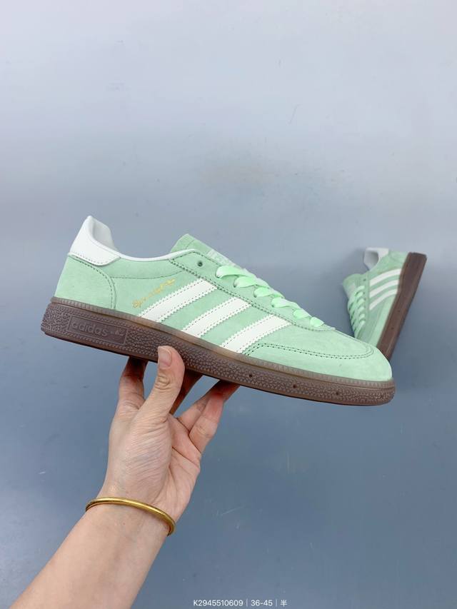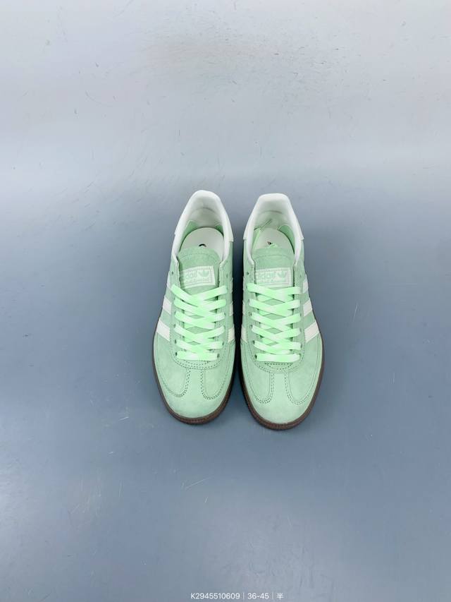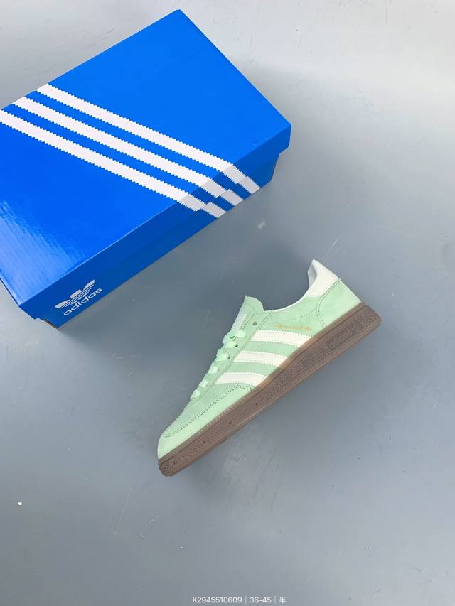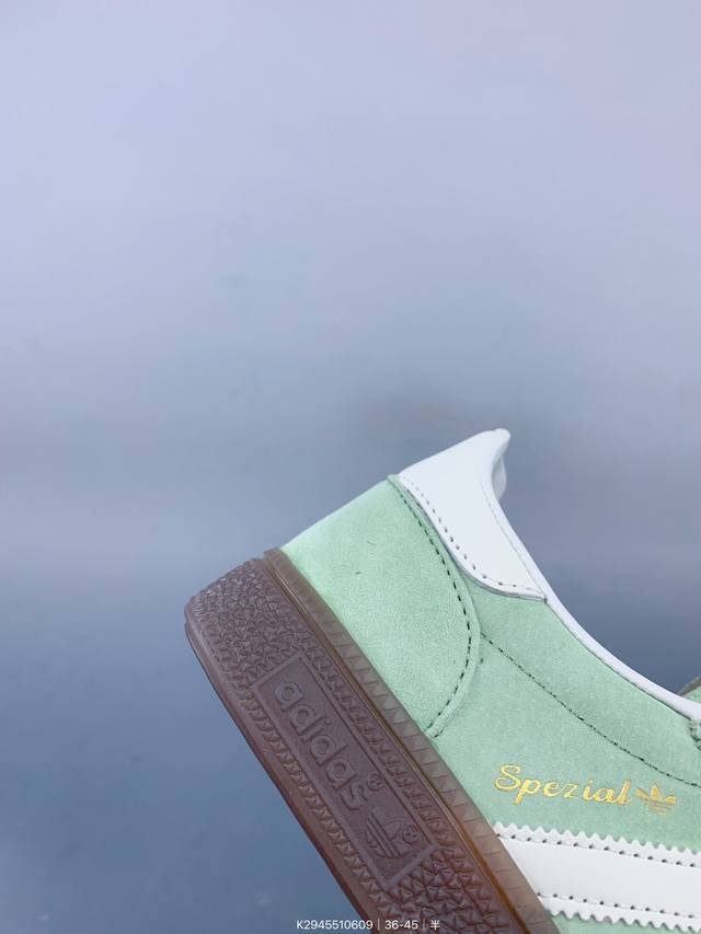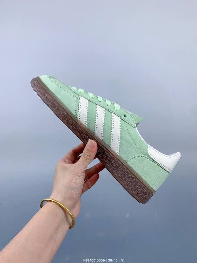 / 公司级Adidas Handball Spezial 阿迪达斯经典款 复古休闲板鞋 全鞋采用反毛皮制作 牛筋耐磨大底 承载青春情怀的板鞋 经典三条杠装饰鞋侧 品