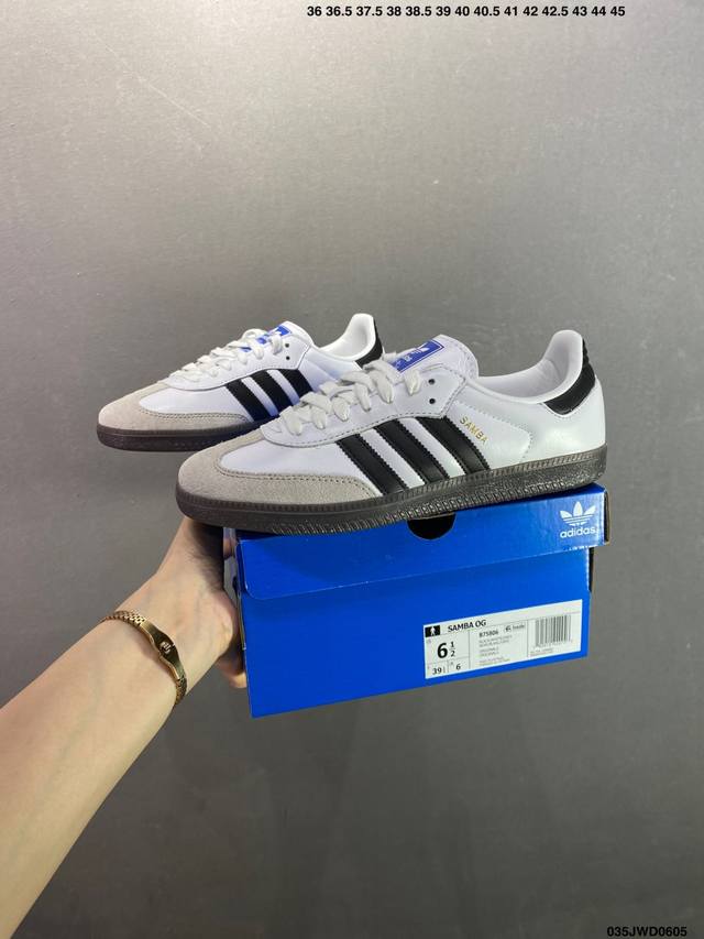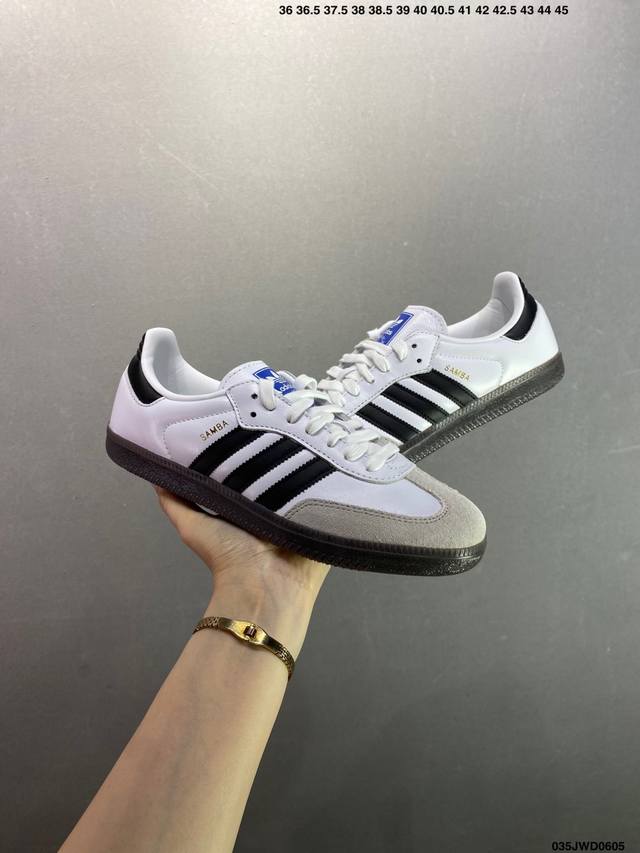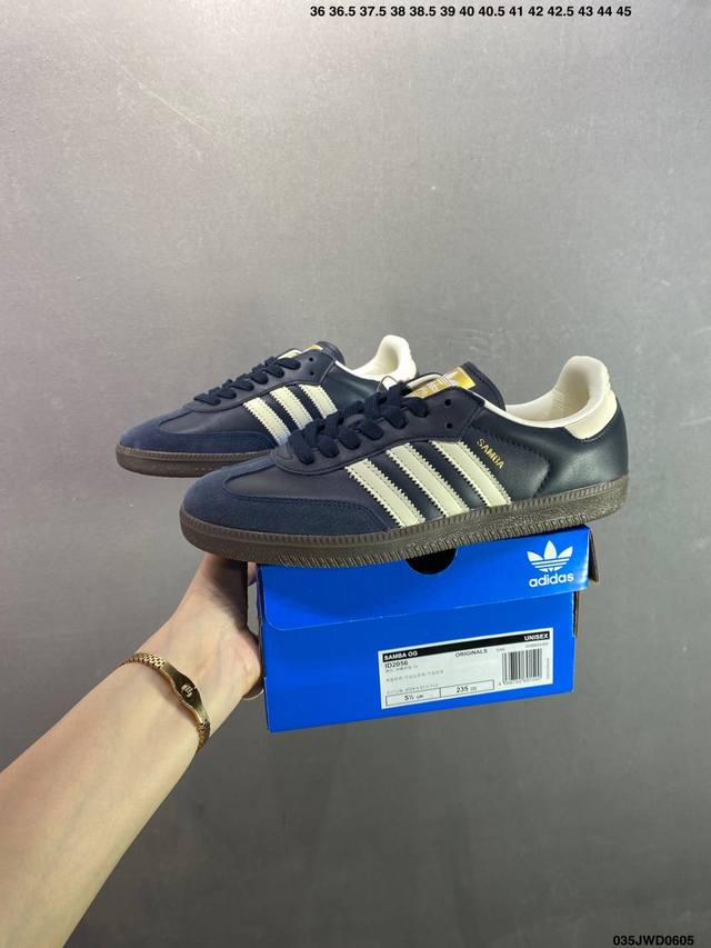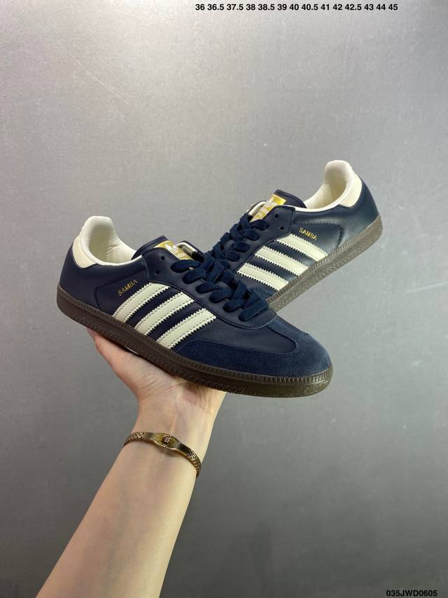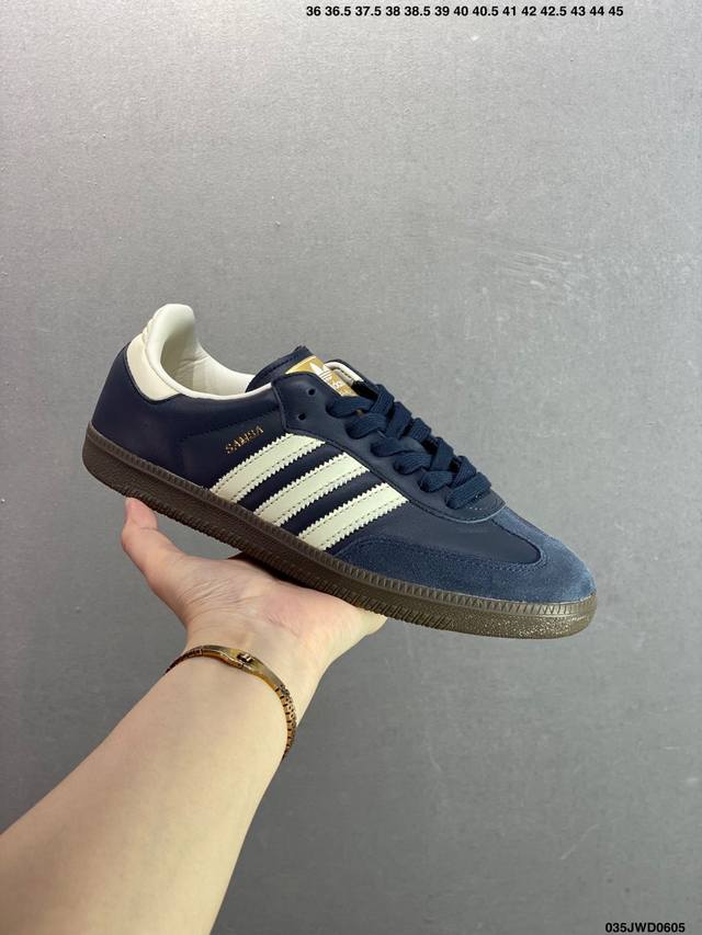 Ad Originals Samba Vegan Og 定制款 桑巴舞系列绅士德训足球风百搭低帮休闲运动板鞋“麂皮深蓝白生胶底” 货号 Id2056