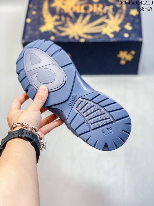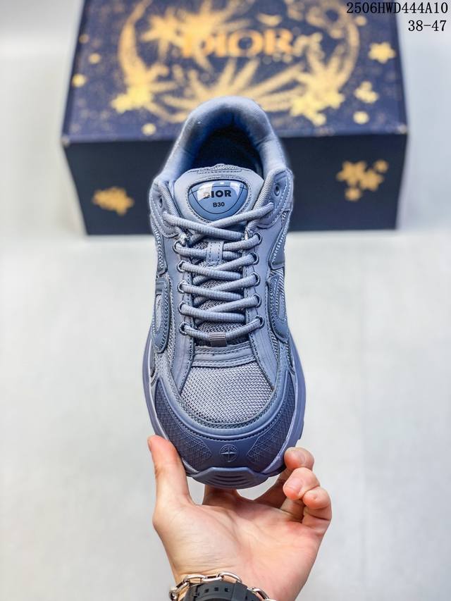 公司级Dior迪奥B30网眼织物厚底系带休闲低帮运动鞋男女同款老爹鞋 这款 B30 Countdown 低帮运动鞋已成为 Dior 别具一格的经典新品,时尚而富有运动风范。采用煤灰色网眼织物精心制作,搭配黑色、蓝色和迪奥灰科技面料,饰以反光 Cd30 标志提升格调,富有美感。鞋舌和鞋跟处饰以银色调 Dior B30 和 Cd30 标志。轻盈的纹理效果橡胶鞋底饰以众多特色细节,内部弹力饰带打造理想的舒适穿着体验。可与各式休闲单品搭配,打造精致造型。