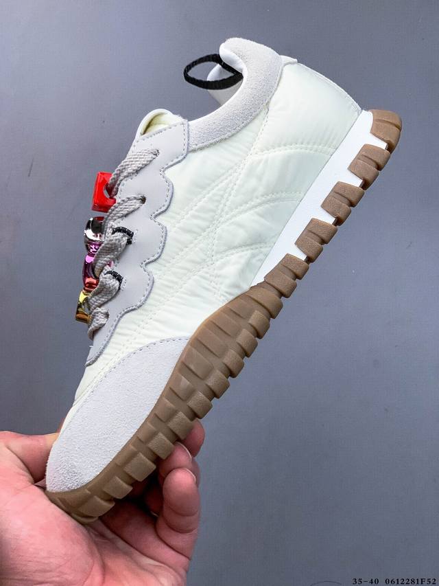 橡胶鞋底除了增加了这双鞋的复古属性外也增加了防滑功能鞋面由科技织物和麂皮制成