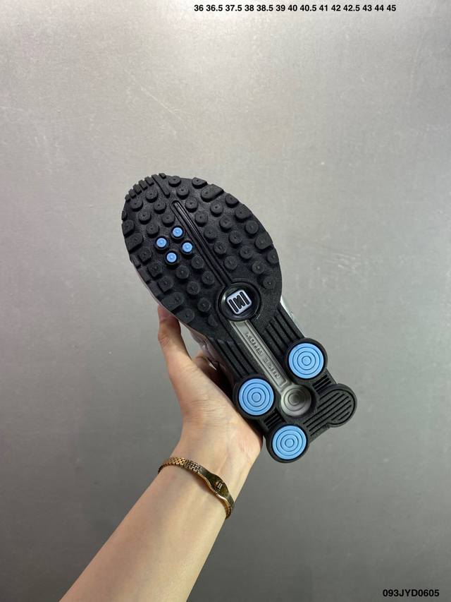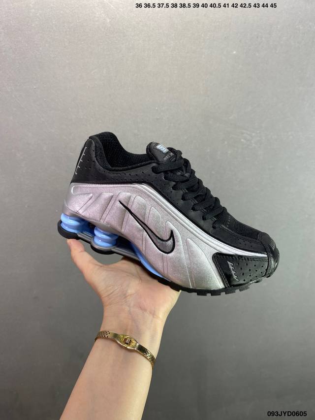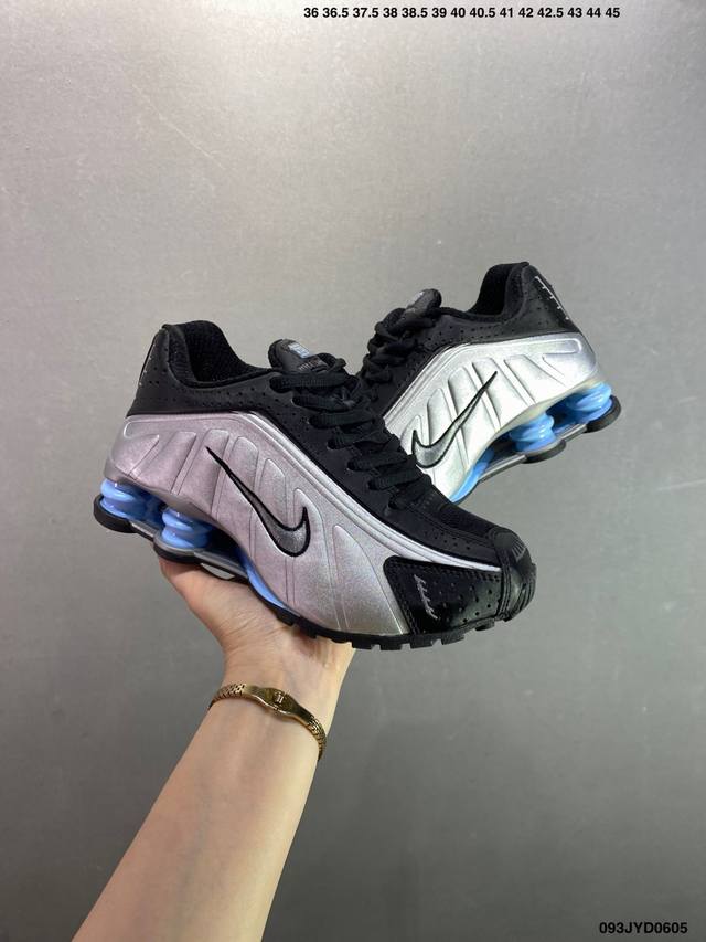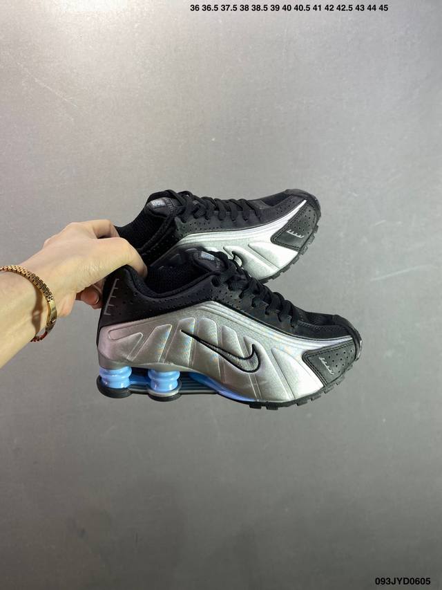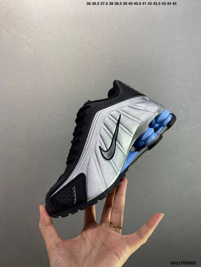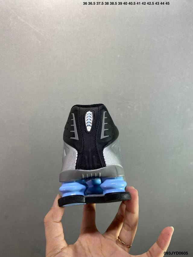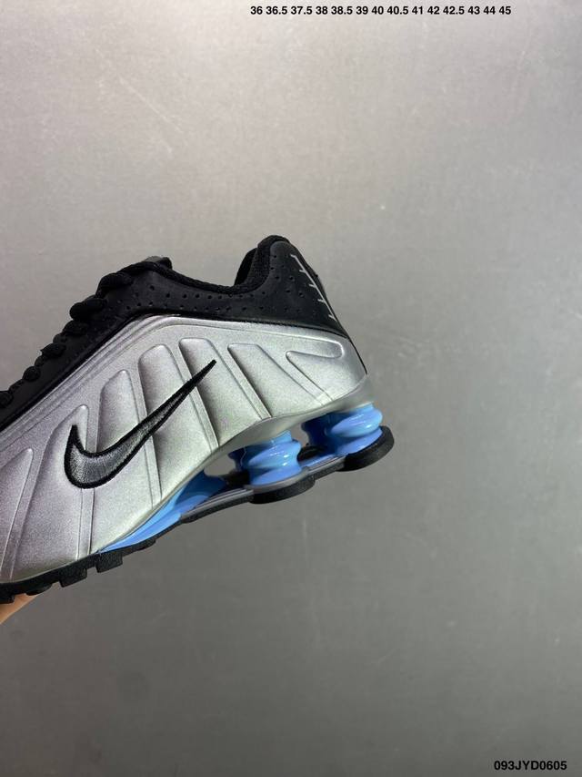 / 公司级Nike Shox R4 高科技专利气柱弹簧跑步鞋 黑蓝银 子弹 Id:093Jyd0605