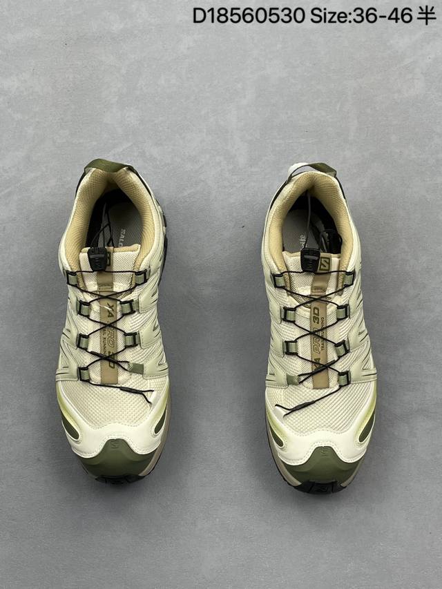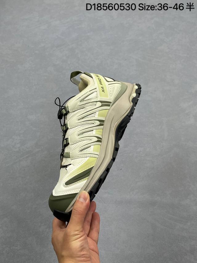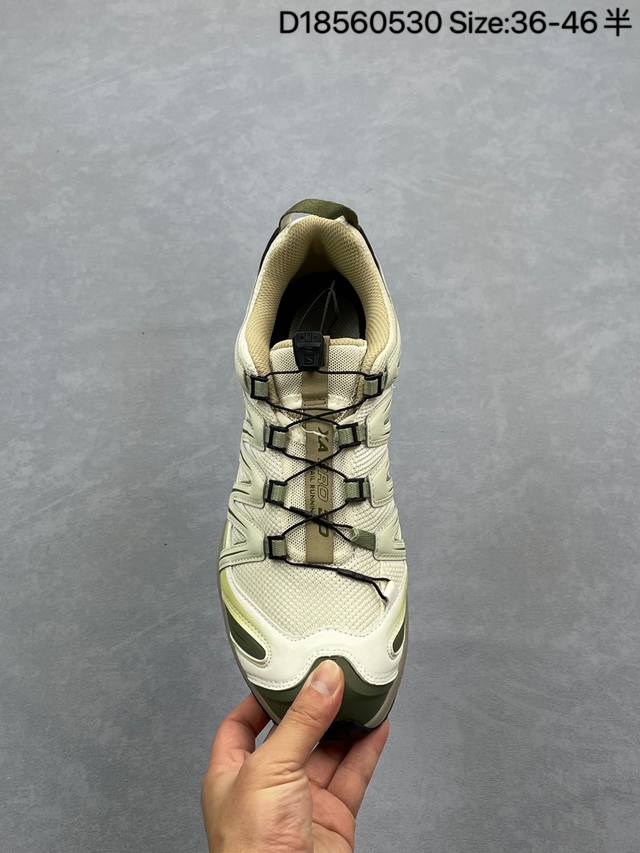 公司级Salomon Xa Pro Xt-6 End萨洛蒙户外越野跑鞋 鞋面采用Sensifit贴合技术 全方位贴合包裹脚型 鞋跟部鞋底牵引设计 提供强大的抓地性能 更适应野外崎岖不平的道路 其3D Advanced Chassis底盘 材料轻量大化 钉齿设计更具稳定性、防护性 鞋底易磨损区运用Contagrip高耐磨材料 应对城市硬质路面长距离跑考验 !