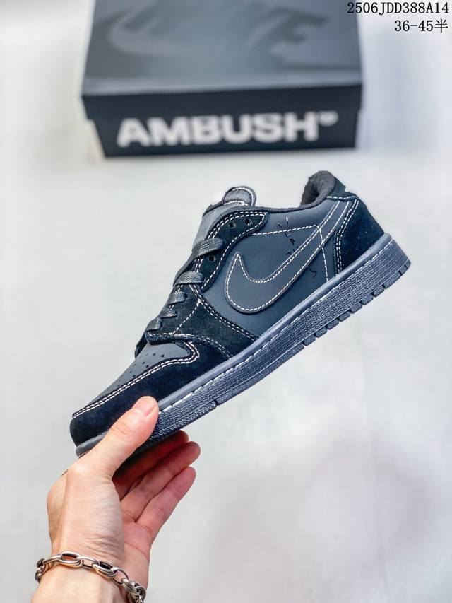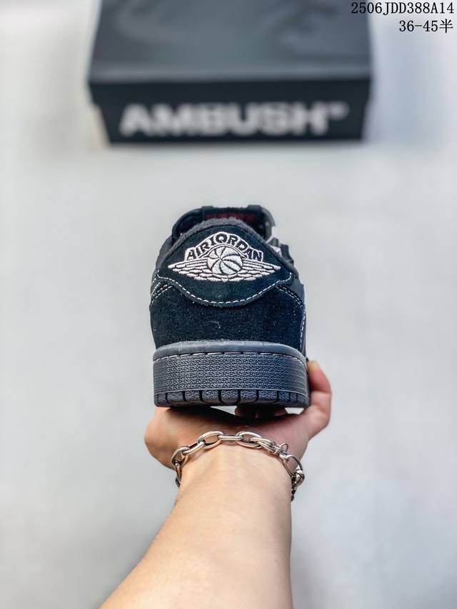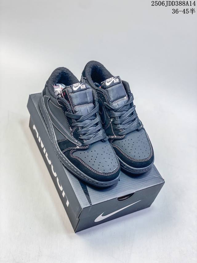 Travis Scott X Air Jordan 1 Low Og Black Phantom 低帮 倒钩4.0 黑武士倒勾联名 Aj1 乔丹1代 Aj1 乔1 低邦 黑武士倒勾4.0 全黑倒钩 乔丹篮球鞋系列 采用黑色磨砂麂皮框架搭配黑色光滑牛巴革麂皮,同时使用有反光效果的白色车线以及缝线来提出鞋子的亮点。后跟分别为小蜜蜂和Wings Logo飞翼标,内衬采用黑色毛绒材质,外侧采用传统的大号后向Swoosh Logo,而内侧则采用常规的Swoosh Logo,标
