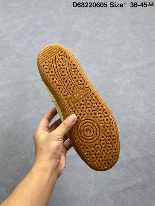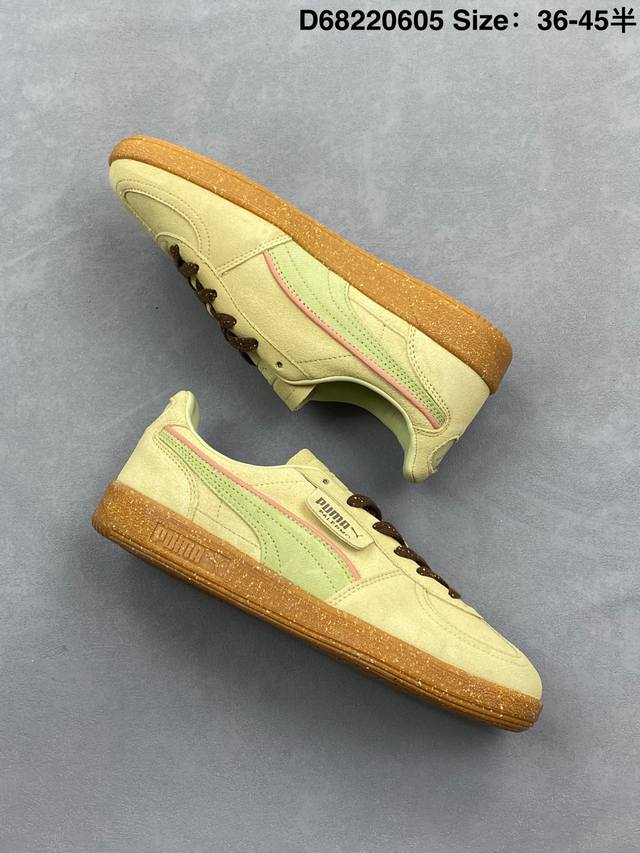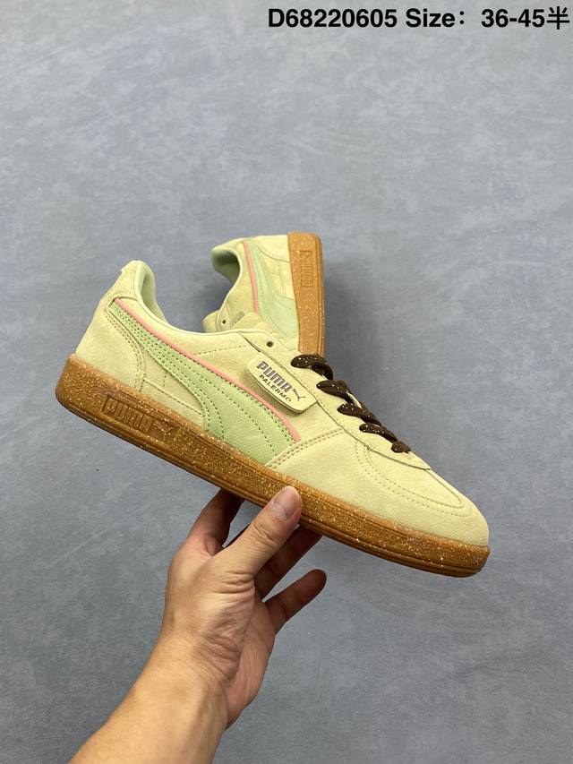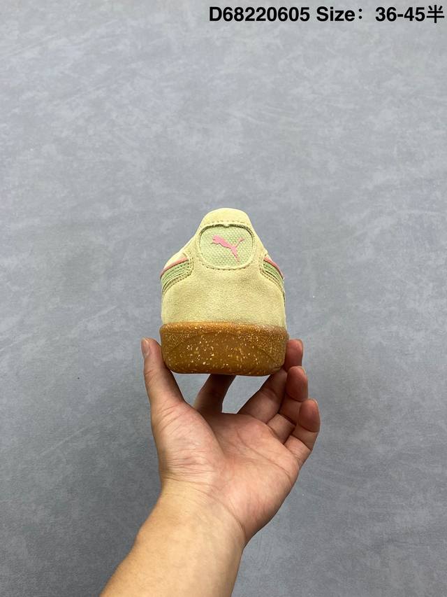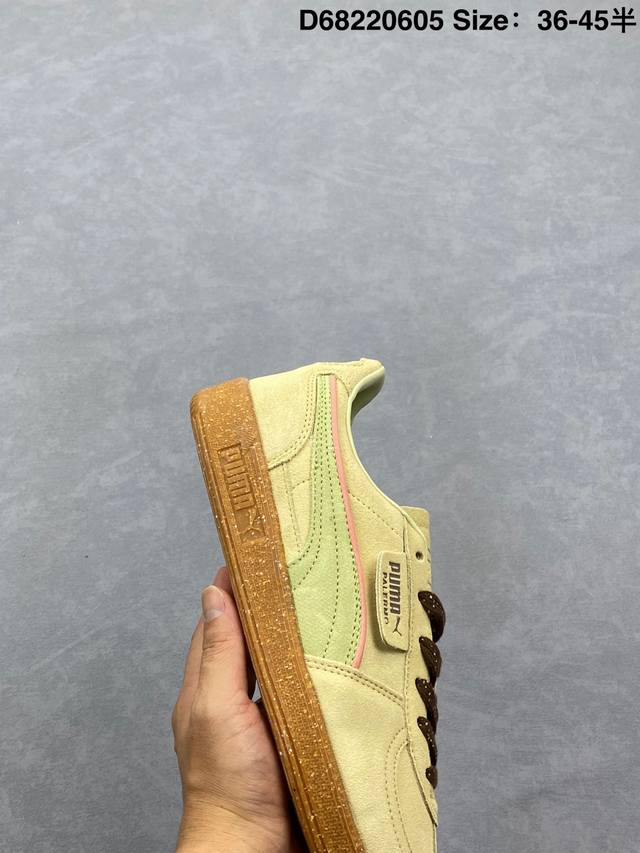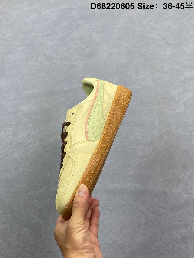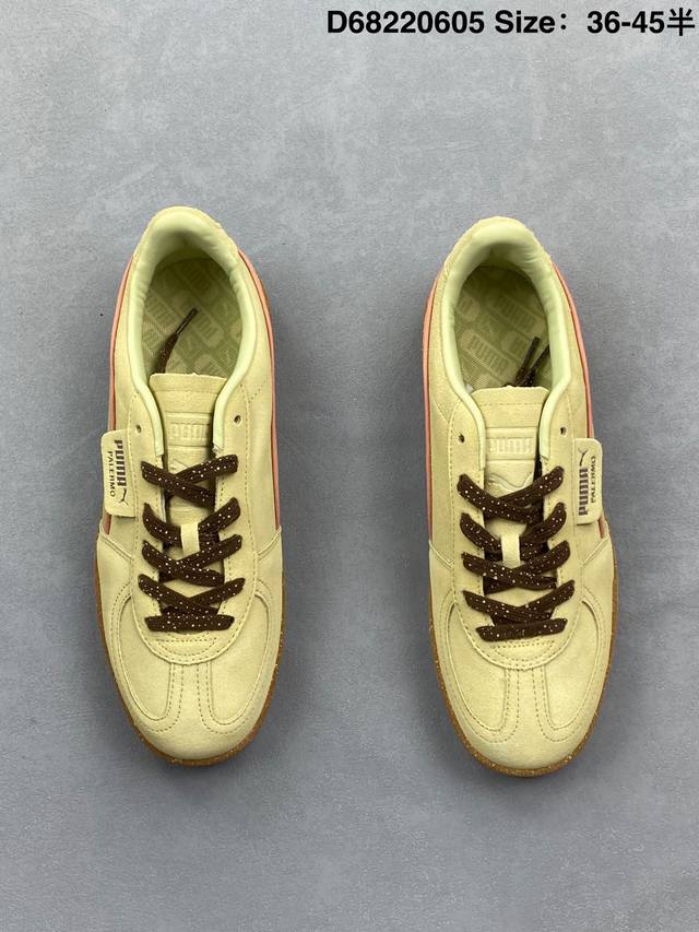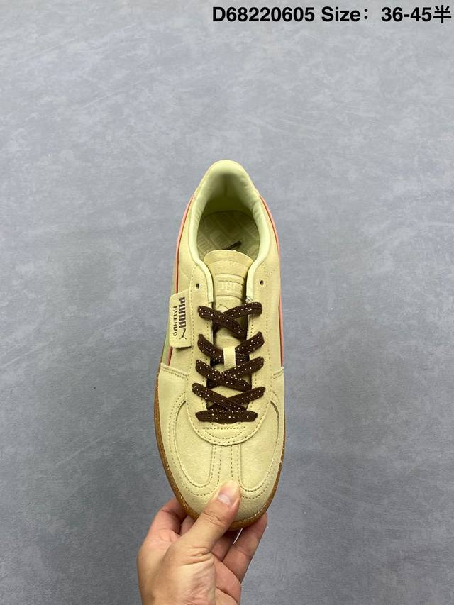 彪马Puma Palermo Cannoli 彪马 防滑耐磨低帮德训板鞋 孔眼底座和脚趾凸起由猪八革材料制成 支持侧踏时的踏步工作 即使在健身房等使用环境中也能确保透气性 像吸盘一样的设计是为了提高体育馆表面的抓地力性能