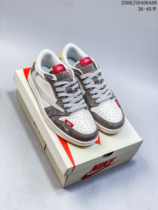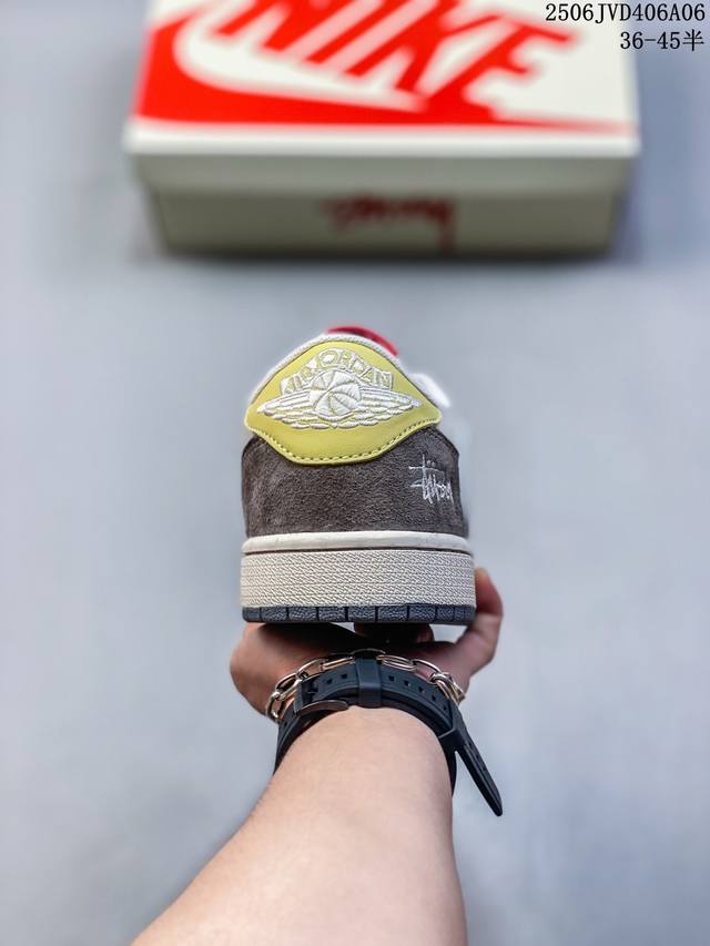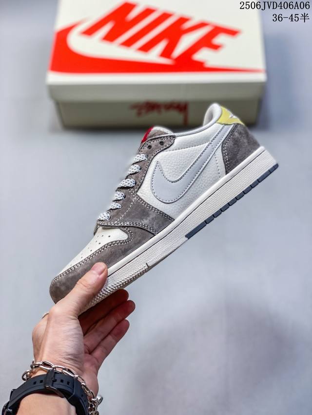 海外爆款限量发售!公司级 Travis Scott X Fragment Design X Jordan Air Jordan 1 Low Og Sp “斯图西联名 米粽黄尾” 多方联名合作融合了Travis Scott 独特的音乐风格,藤原浩个性的设计风格以及Jordan品牌的经典元素 使其成为一双具有独特身份和价值的鞋子 清新而立体的外观加上联名标识更突出了其独特身份 这种配色方案显示出活力和时尚感 在视觉上引人注目 鞋身的质感和细腻的细节处理使其显得高端而格调十足 这款“倒钩”联名是设计与创意完美结
