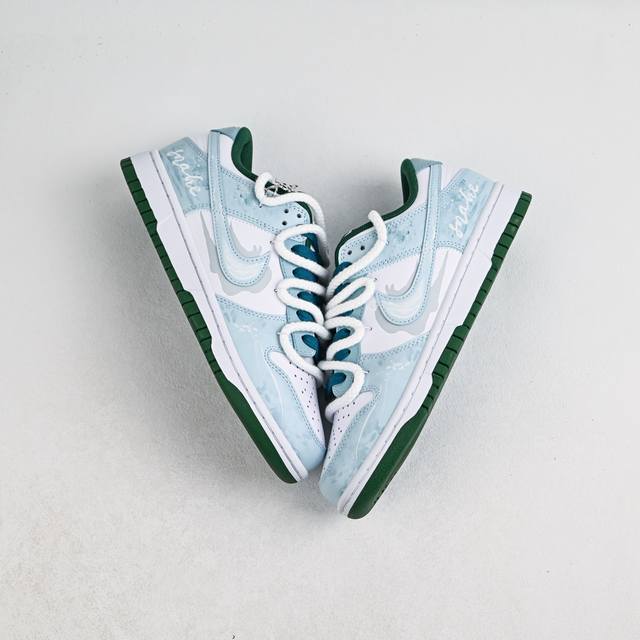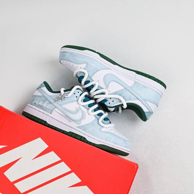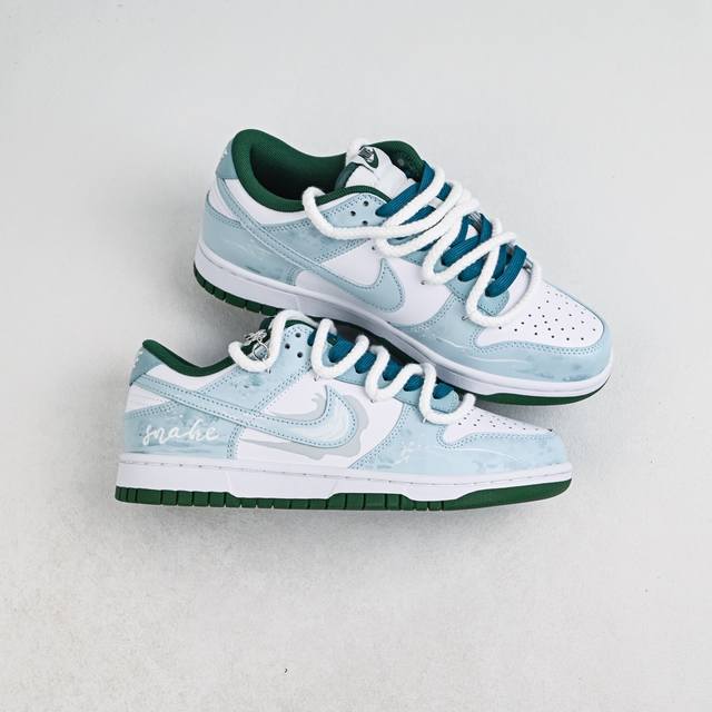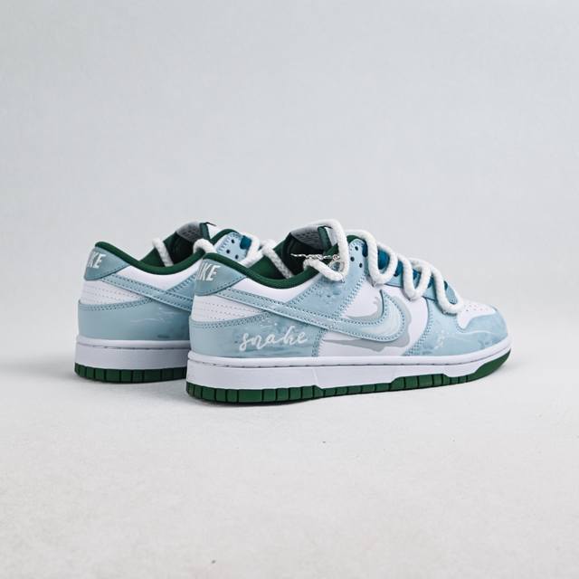 此款鞋身应用冰川蓝与月魄白交织成迷幻水波纹,采用3D打印工艺营造立体效果Swoosh,犹如灵蛇游弋的液态轨迹。后跟 Snake 主题宣言随蛇蜕鳞片逐层显现。灵蜕时刻,银鳞共振,随步态吐纳光影波澜,让每一道曲线都有灵蛇蜕变的张力。