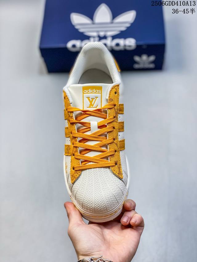 纯原 Clot X Ad Originals Supertar金标 #贝壳头斯图西联名限定 贴合柔软皮料灰白配色 ,这双鞋的整体设计思路和风格可以说很Clot。鞋款整体选用了易穿搭的白色作为主色调,而加厚的锯齿形外底以及标志性的贝壳头无疑把鞋款的独特属性进一步展现出来。