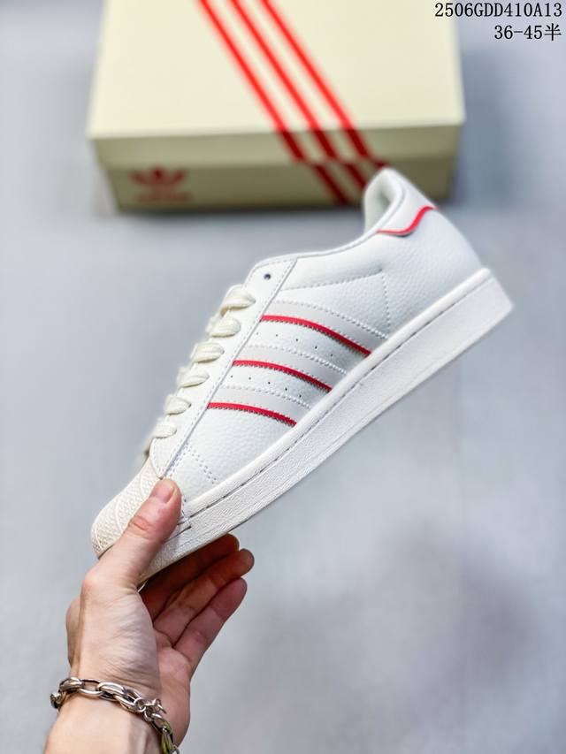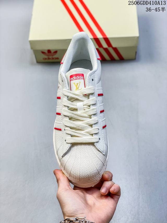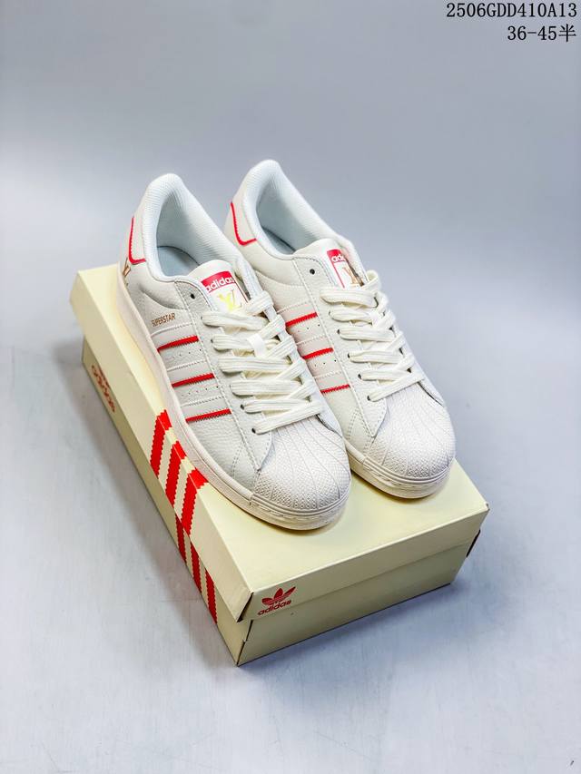 纯原 Clot X Ad Originals Supertar金标 #贝壳头斯图西联名限定 贴合柔软皮料灰白配色 ,这双鞋的整体设计思路和风格可以说很Clot。鞋款整体选用了易穿搭的白色作为主色调,而加厚的锯齿形外底以及标志性的贝壳头无疑把鞋款的独特属性进一步展现出来。