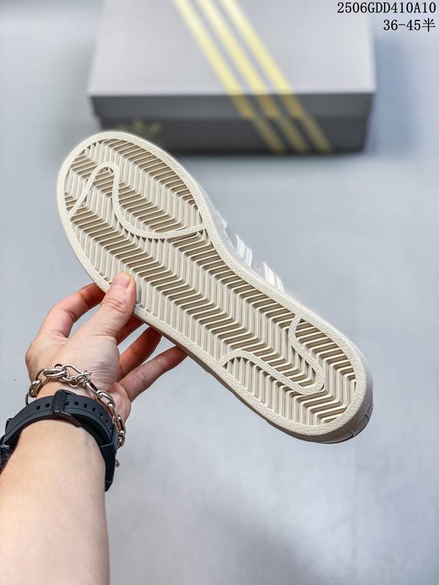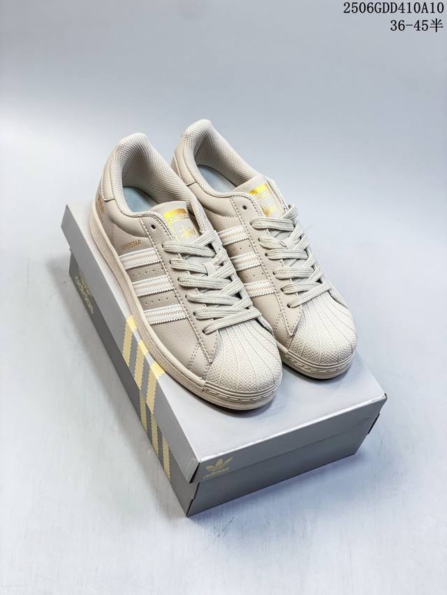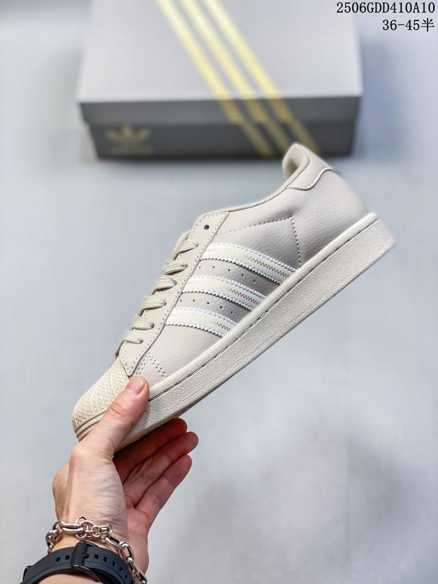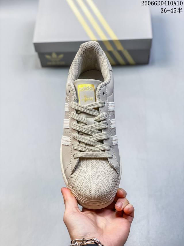 纯原 Clot X Ad Originals Supertar金标 #贝壳头斯图西联名限定 贴合柔软皮料灰白配色 ,这双鞋的整体设计思路和风格可以说很Clot。鞋款整体选用了易穿搭的白色作为主色调,而加厚的锯齿形外底以及标志性的贝壳头无疑把鞋款的独特属性进一步展现出来。