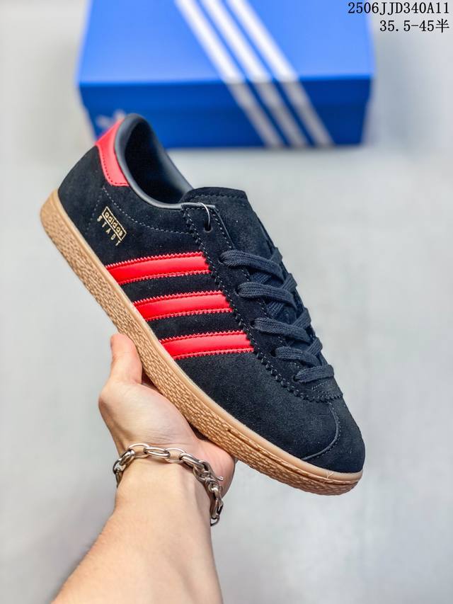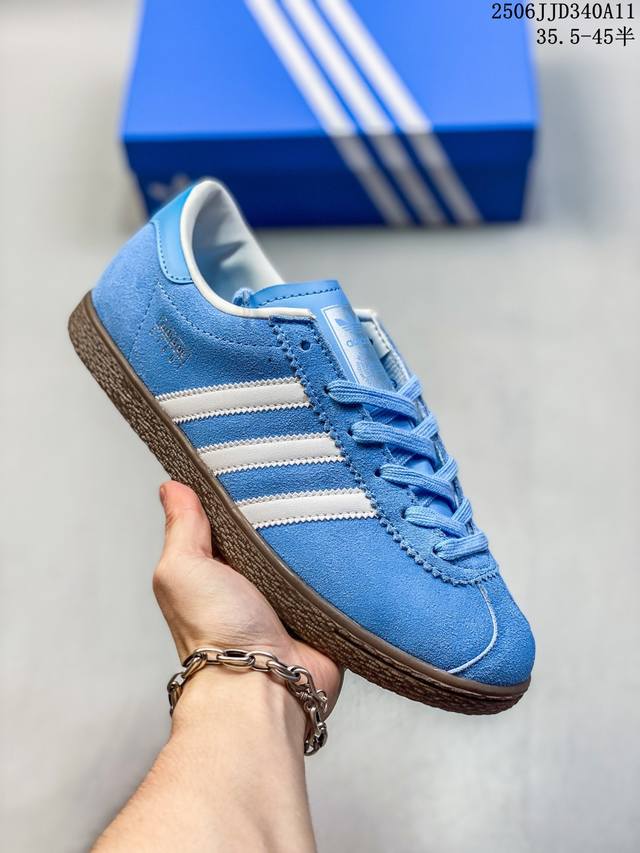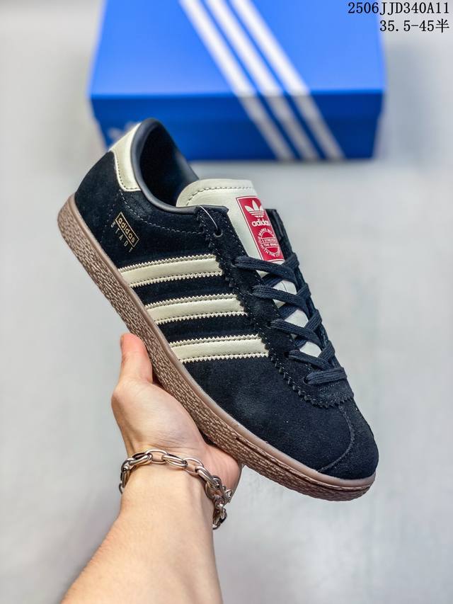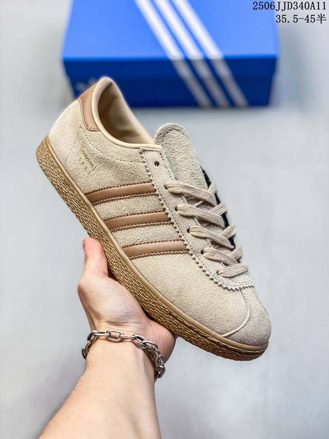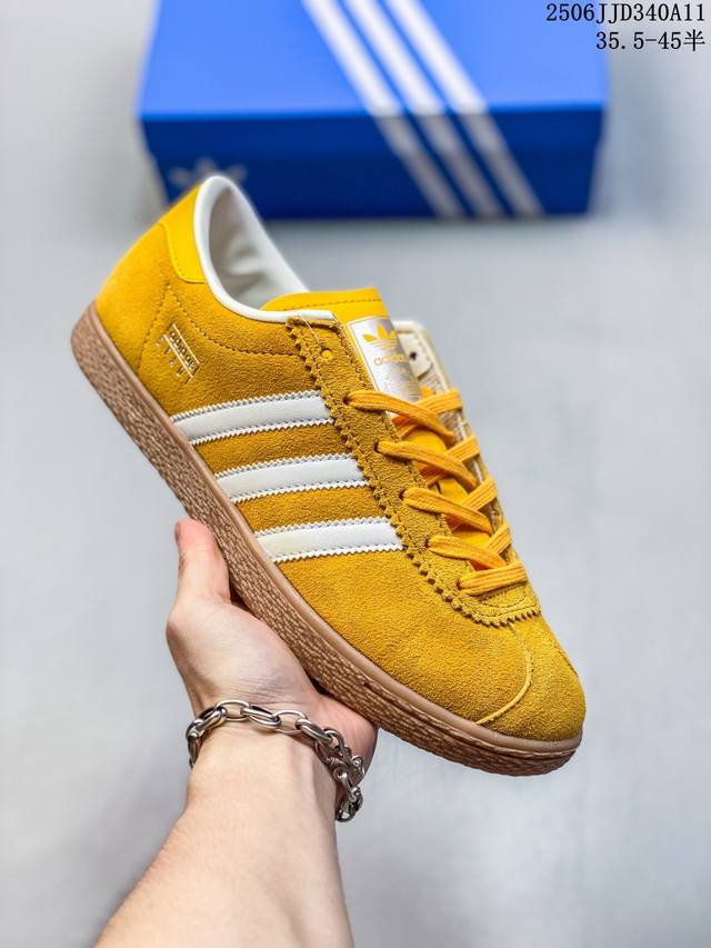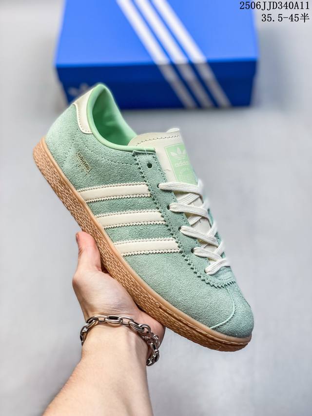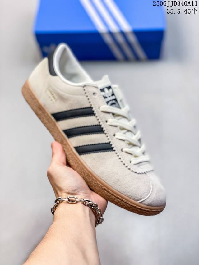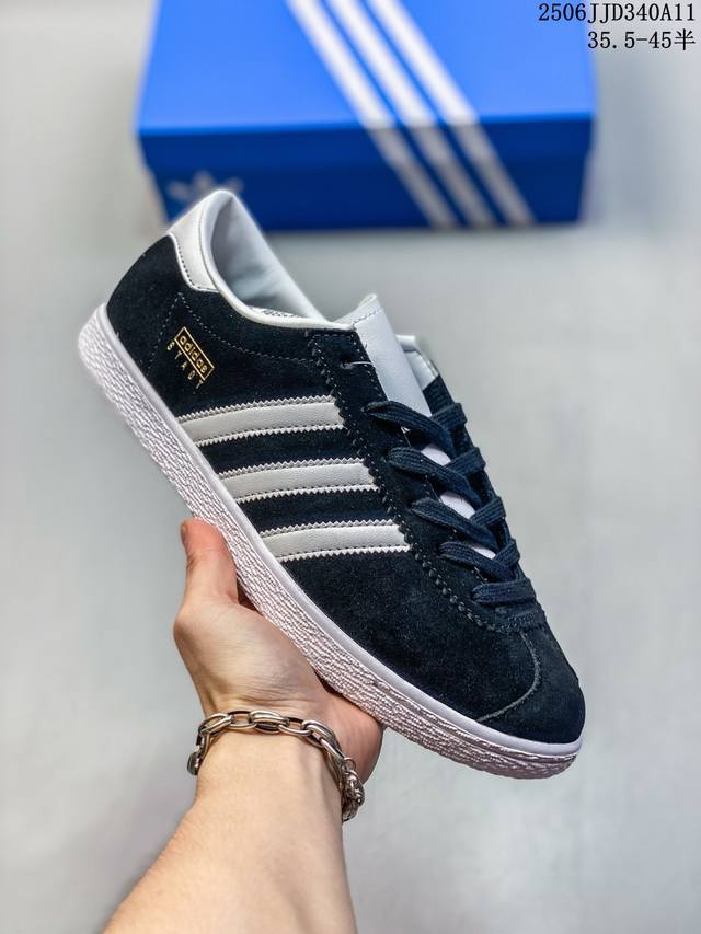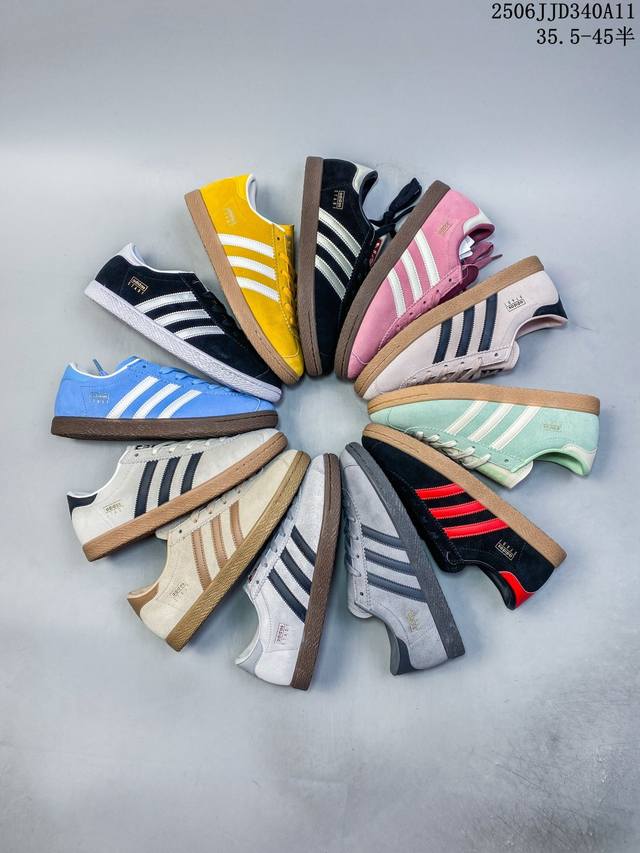 阿迪达斯 Adidas Handball Spezial 低帮三叶草学院风复古休闲板鞋 德训鞋 橡胶底柔软皮革经典运动鞋板鞋。圆头、缝合拼接设计、正面绑带、鞋舌部位附有标贴、经典三条杠装饰鞋侧,承载青春情怀的板鞋。品牌辨识度清晰,牛筋耐磨大底。