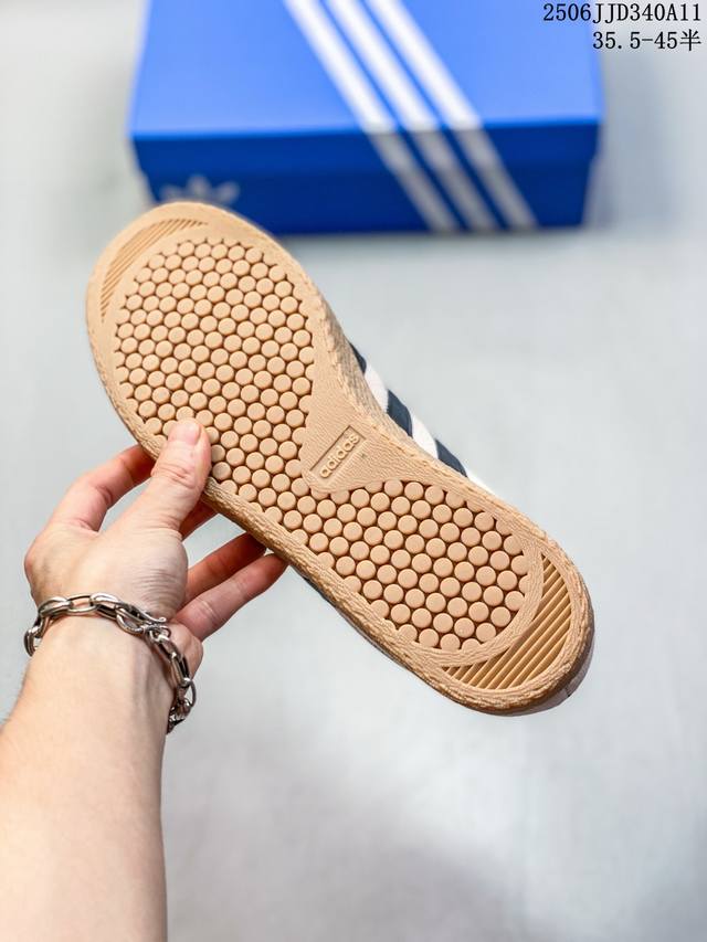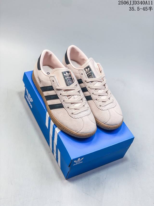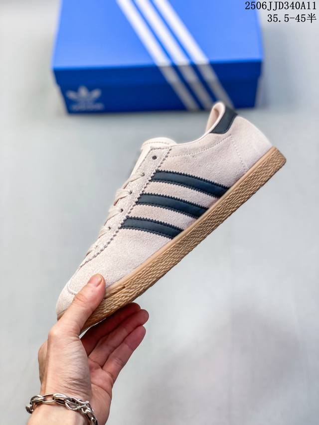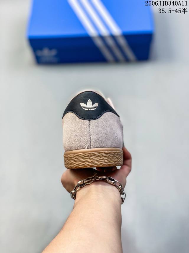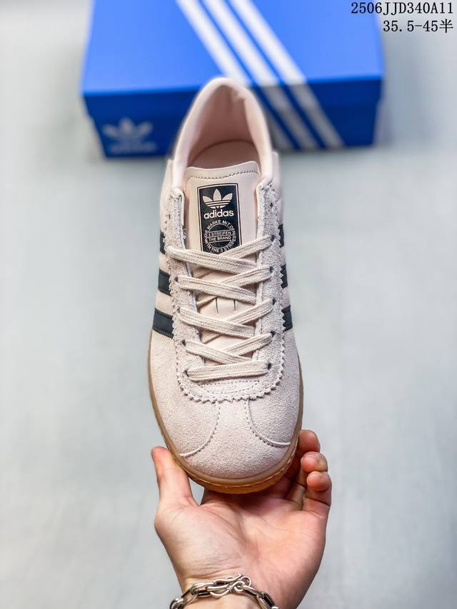 阿迪达斯 Adidas Handball Spezial 低帮三叶草学院风复古休闲板鞋 德训鞋 橡胶底柔软皮革经典运动鞋板鞋。圆头、缝合拼接设计、正面绑带、鞋舌部位附有标贴、经典三条杠装饰鞋侧,承载青春情怀的板鞋。品牌辨识度清晰,牛筋耐磨大底。