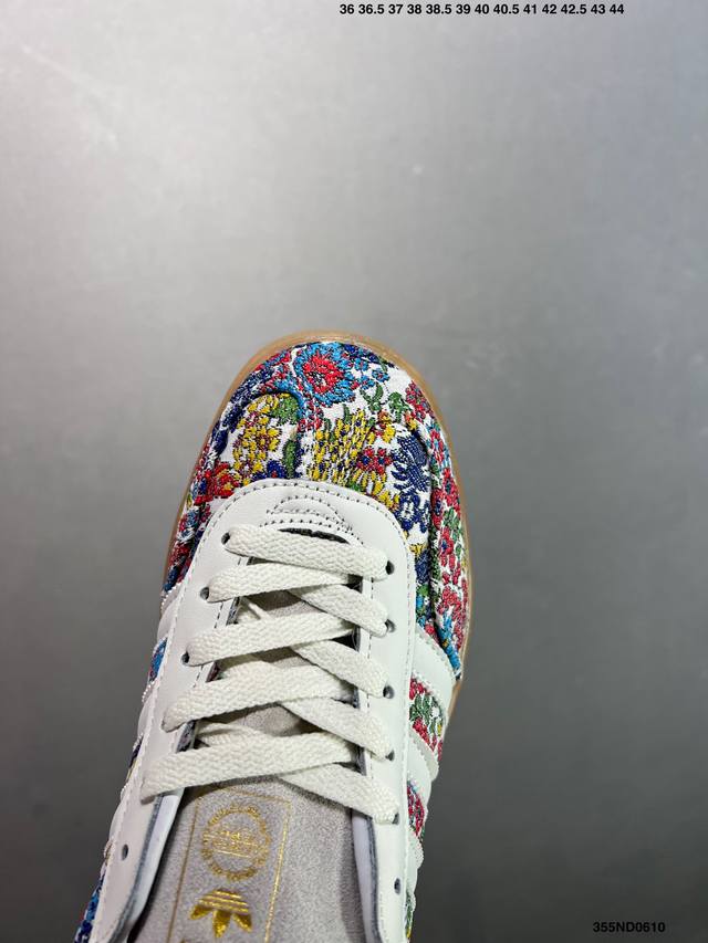 这款阿迪达斯运动鞋是 1979年 Gazele Lndoor 运动鞋的复兴,柔软的绒面革和耐用的皮革村里融合在橡胶外底上,具有半透明效果。3-Stripes 和金属金色字样完善了原汁原味的外观。