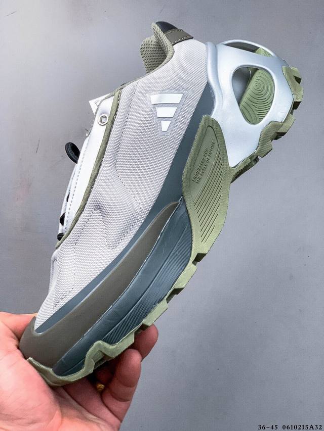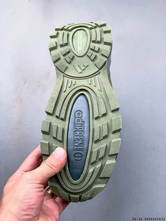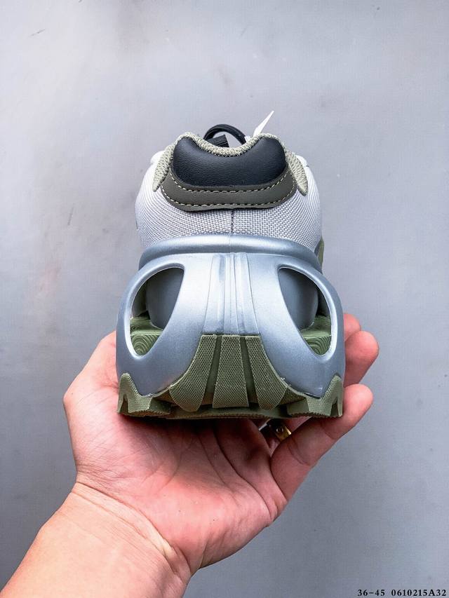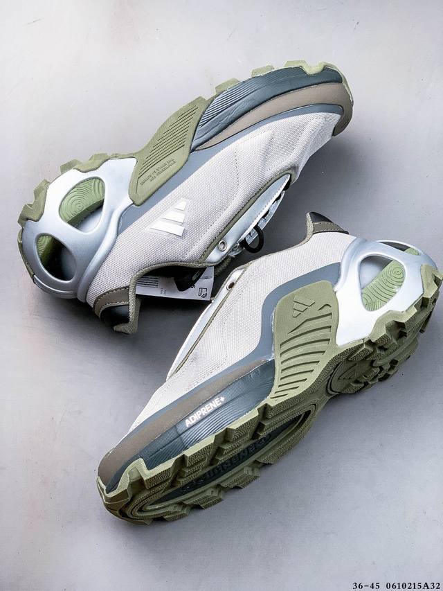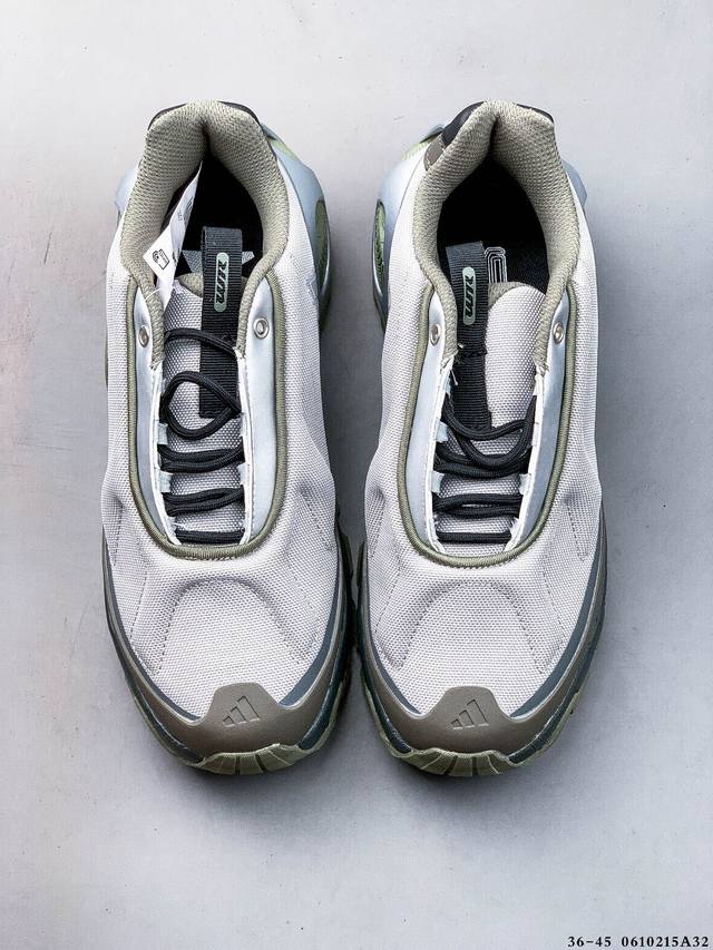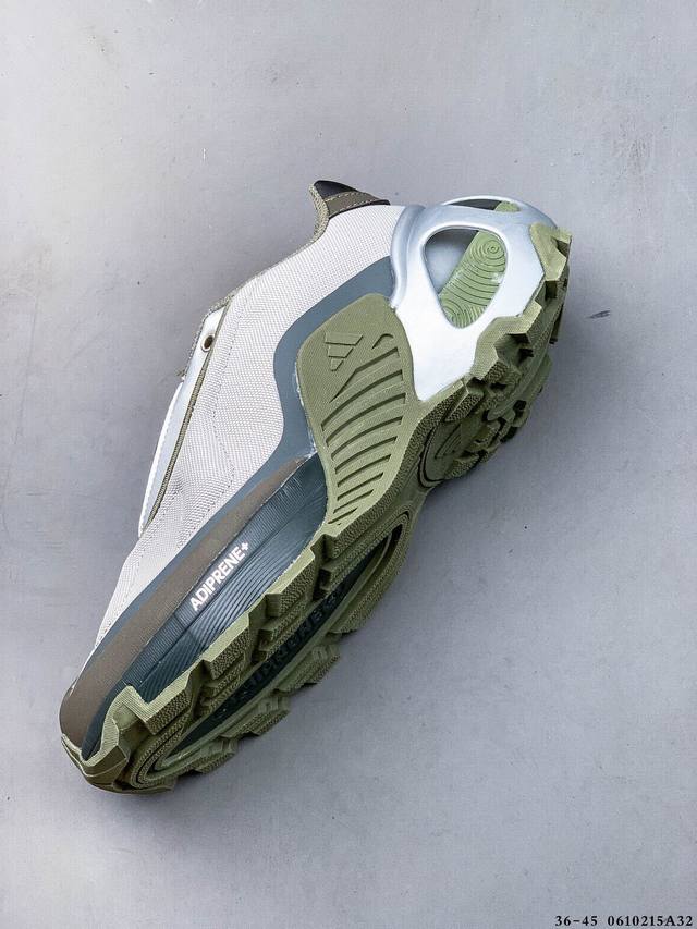将标志性Adiprene科技安置前掌,搭配双色双密度Tpu 中底技术,形成 厚底外观 ,实际穿着脚感舒适,以及玩家们正热议的后跟处镂空 Tpu 材料,既提供有力支撑,美学上镂空的异形、前卫极具辨识度;