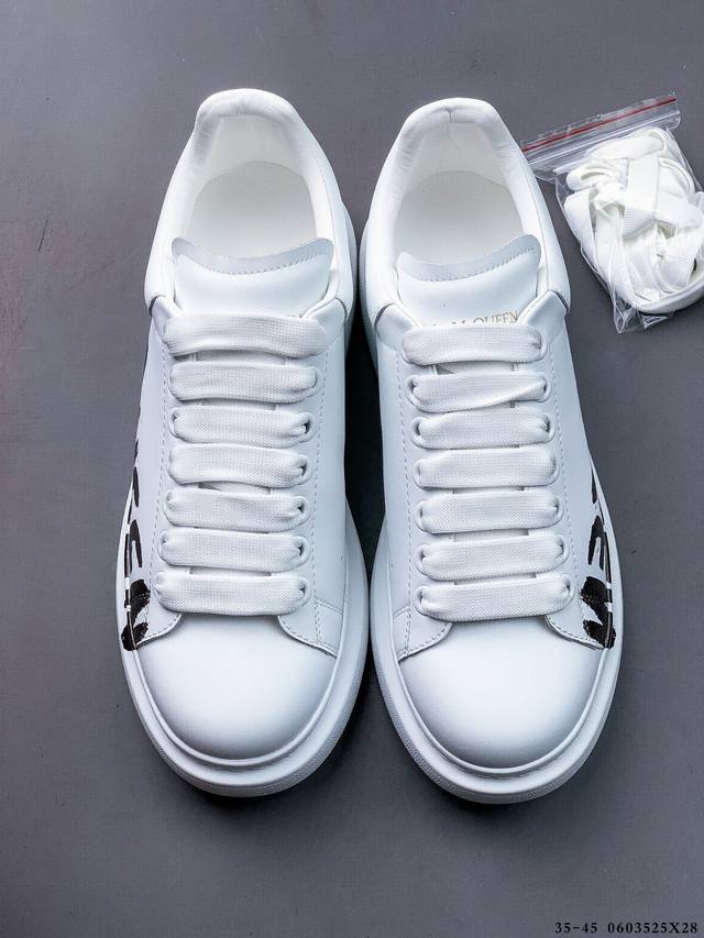 Alexander Mcqueen 麦昆 经典款 想不出有任何理由不收它!面料采用进口丝绸亚光原版牛皮 最新材料 水染羊皮内里,牛皮垫脚 原版大底 回弹度极佳 耐磨又舒适 鞋底厚4.5Cm