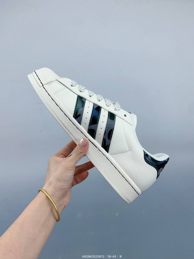 高端定制 阿迪达斯Adidas三叶草 Originals Superstar贝壳头系列 低帮经典百搭休闲运动板鞋原装牛仔布 帆布材料 用料绝不含糊 独家版型蒸餾加工帶來的是更好的视觉和脚感体验 清洁度 电绣工艺 皮料切割干净无任何毛边 细节完美
