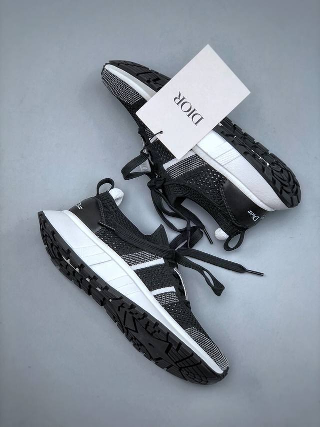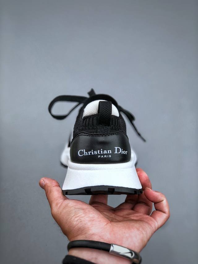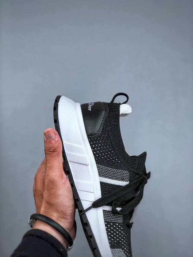 以优雅时尚的造型重新演绎运动风格。鞋面采用纯黑网眼织物精心制作,鞋带和鞋跟饰以Christian Dior Paris标志。精致的双色鞋底轻盈柔软,可为各式休闲造型增添高订气质。